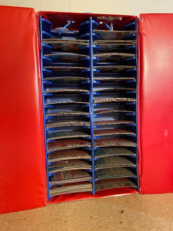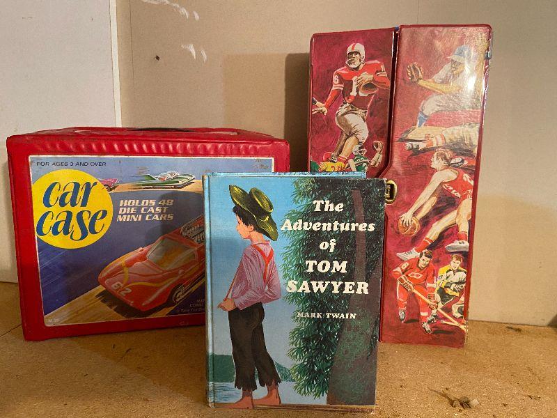 This is a fun lot that includes a vintage car case with cars, baseball case with cards, and Tom Sawyer book. Please see all pics for contents of the lot and condition. Thank you for looking and have fun bidding.