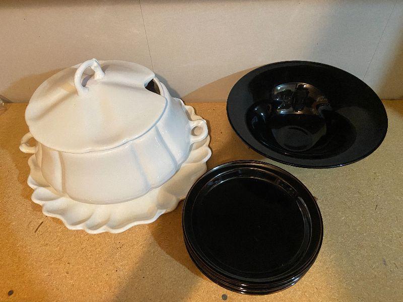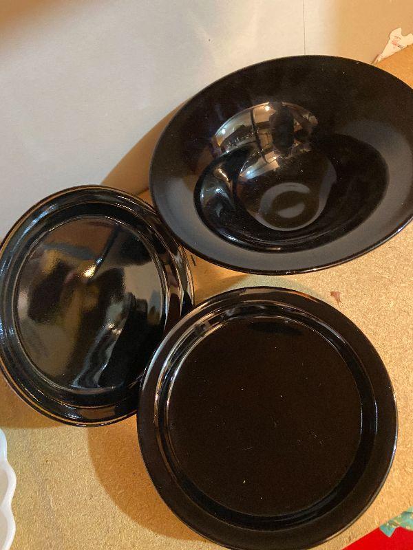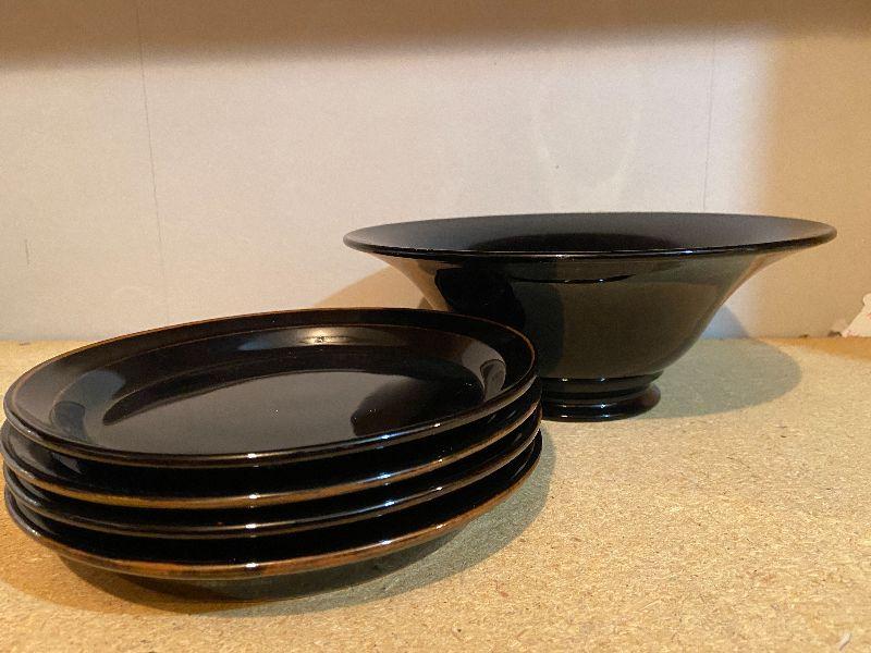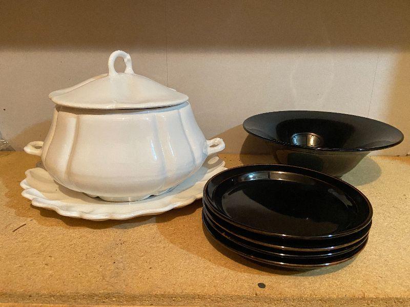 Nice lot of serving pieces. White piece is marked California USA Please see pics for size and condition of the lot. Thank you for looking and have fun bidding.