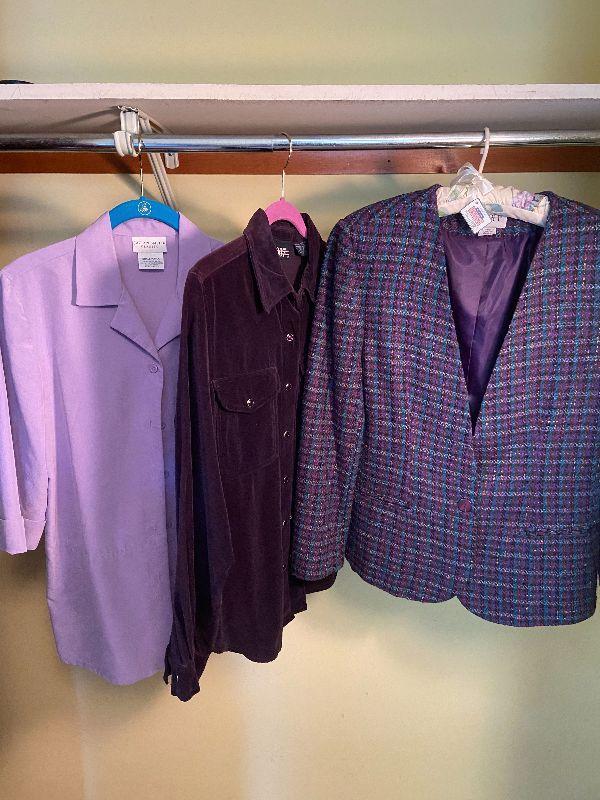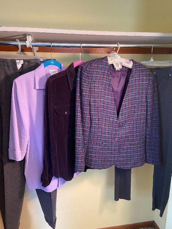 CL3: Lot Of Purple Dress Tops/Jacket Size S/M And Grey Dress Pants Size 8/10
