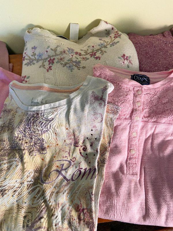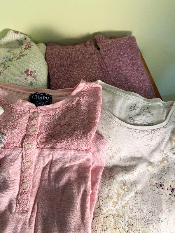Size small sweaters, prints and solids, one is new with tags. Please see all pictures for exact contents of the lot, condition of the items, and if measurements if taken. Thank you for looking and have fun bidding.