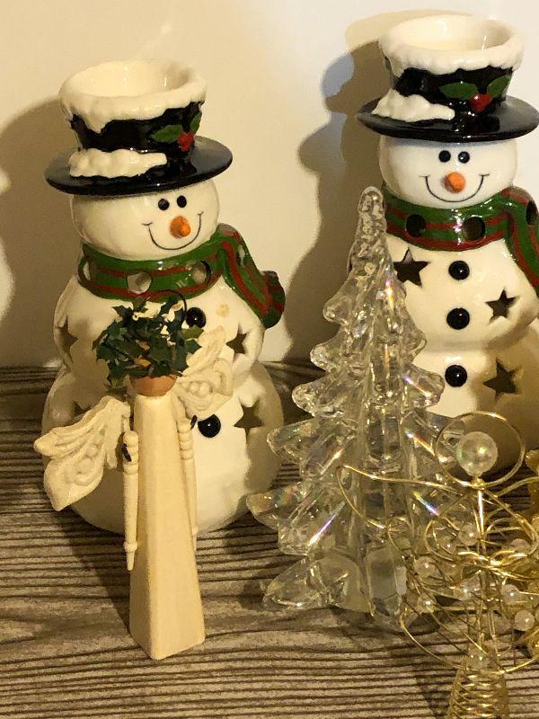This is a great lot of holiday décor. Snowmen Yankee candle tealight holders, Lenox Snowman, and more. Please see all pics for content of the lot and condition. Thank you for looking and have fun bidding.