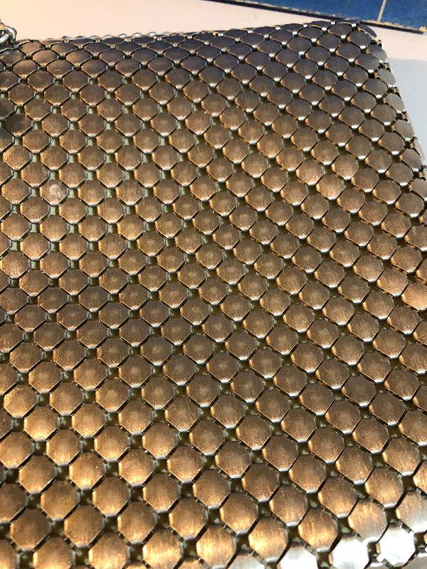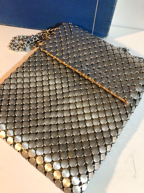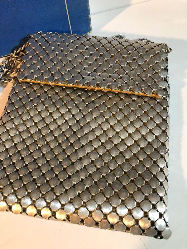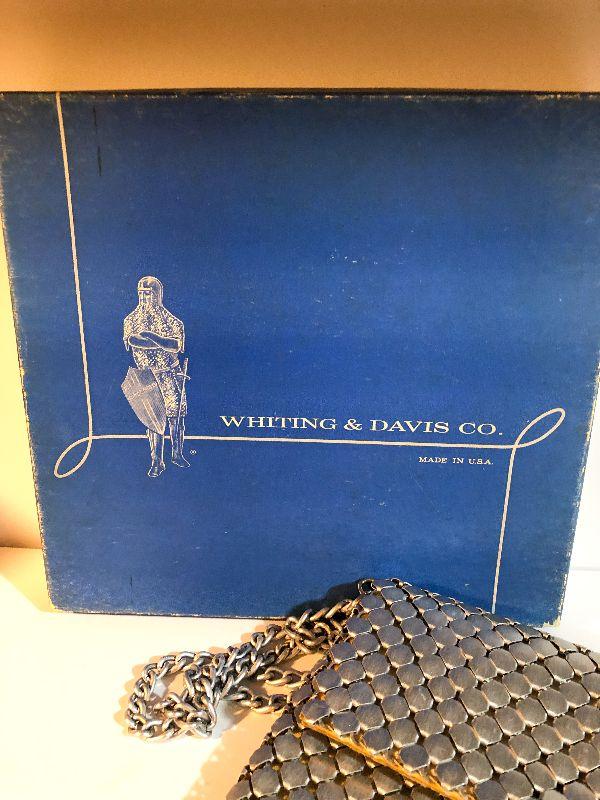 This is a vintage piece marked Whiting and Davis. Please see the pics which are the best representation of age and condition. This is a metal mesh bag and chain handle. This is gorgeous. Thank you for looking and have fun bidding.