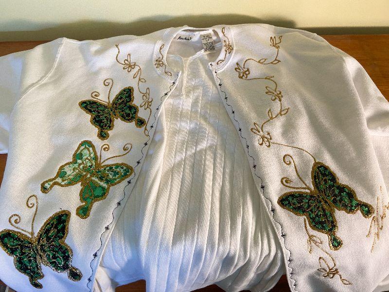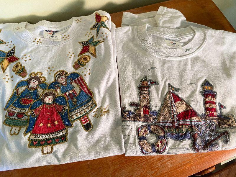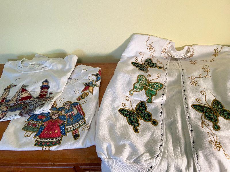 Sweater with butterflies, and t shirts with angels and nautical theme. Please see all pictures for exact contents of the lot, condition of the items, and if measurements if taken. Thank you for looking and have fun bidding.