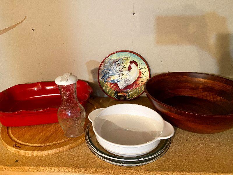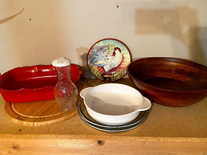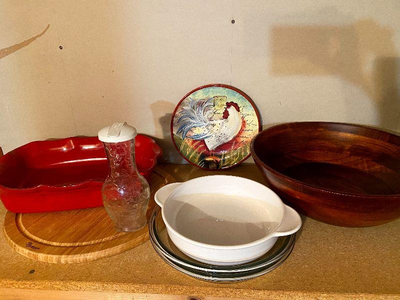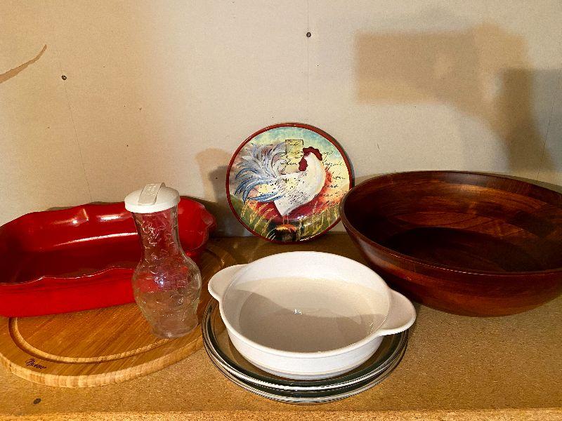 CL49:  Large Salad Bowl, Glass pie plates, Cutting Board and more