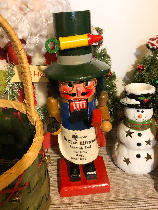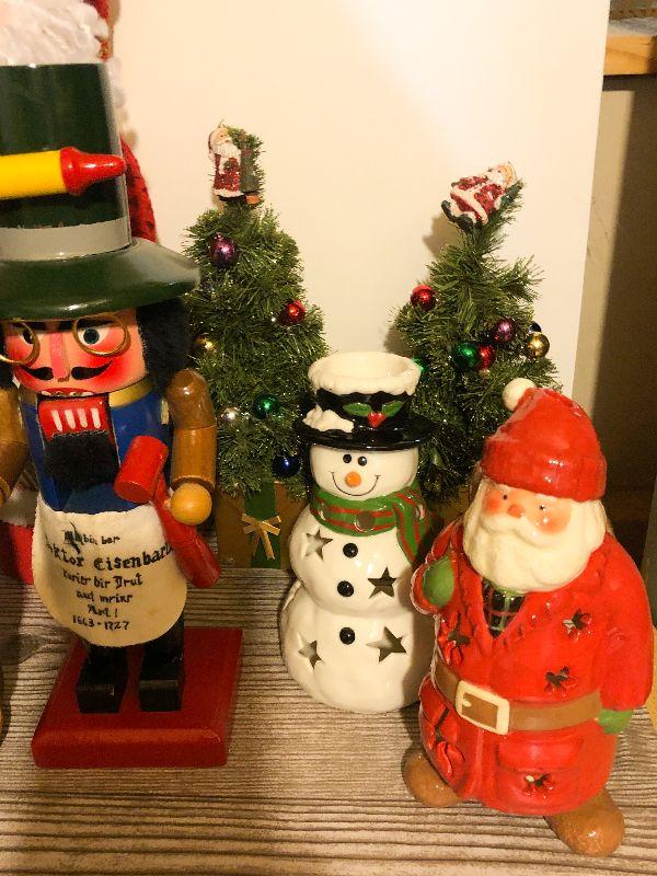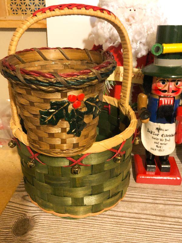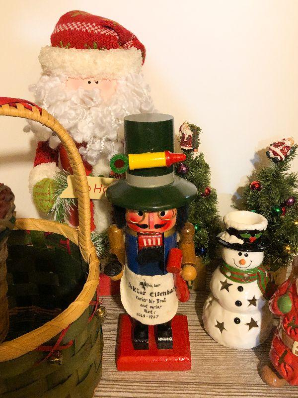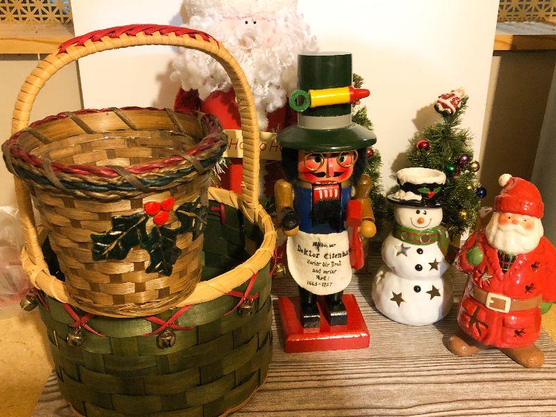 Please see contents of lot for fun holiday items. Nutcracker, tea-light holders, baskets and more. Please see pics for contents of the lot and condition. Thank you for looking and have fun bidding.