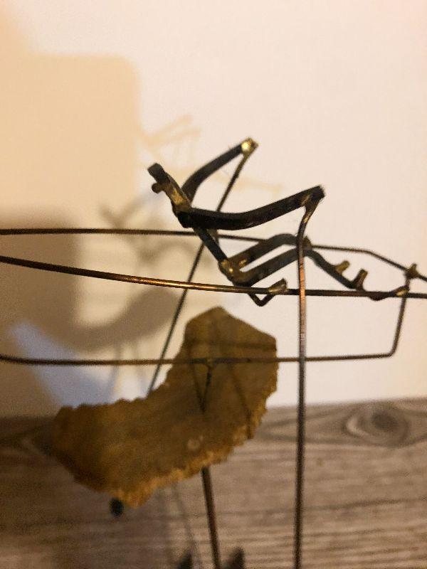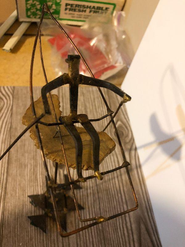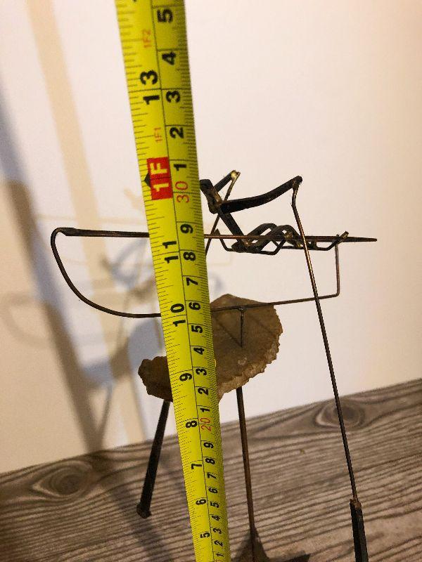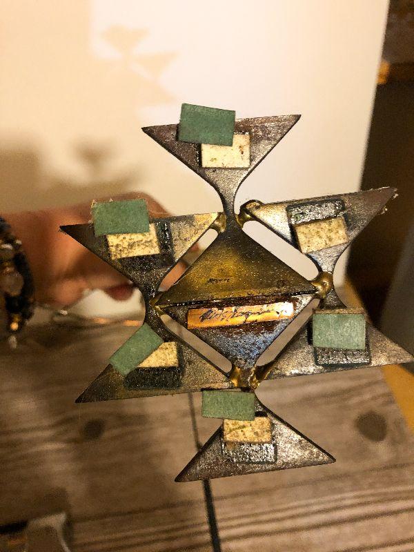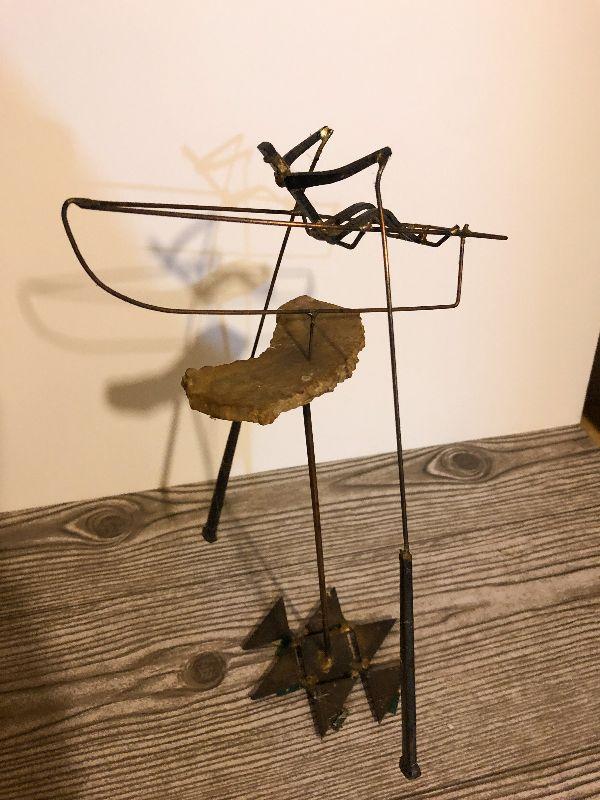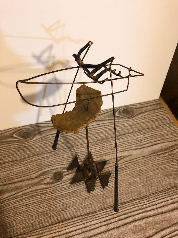 This is very unique and artist signed, but hard to read on bottom. Composition is metal and stone. Please see pics for size, condition, and measurements if taken. Thank you for looking and have fun bidding.