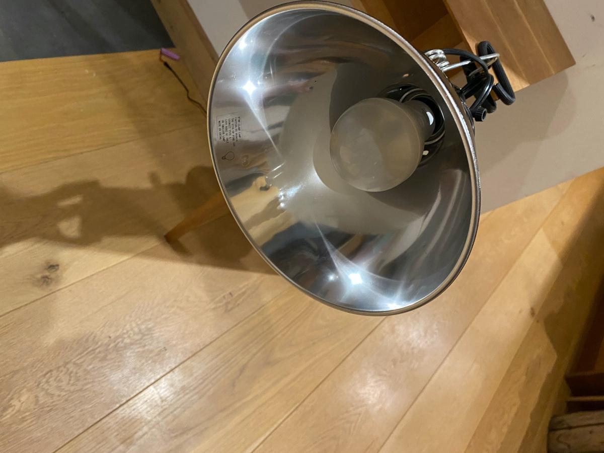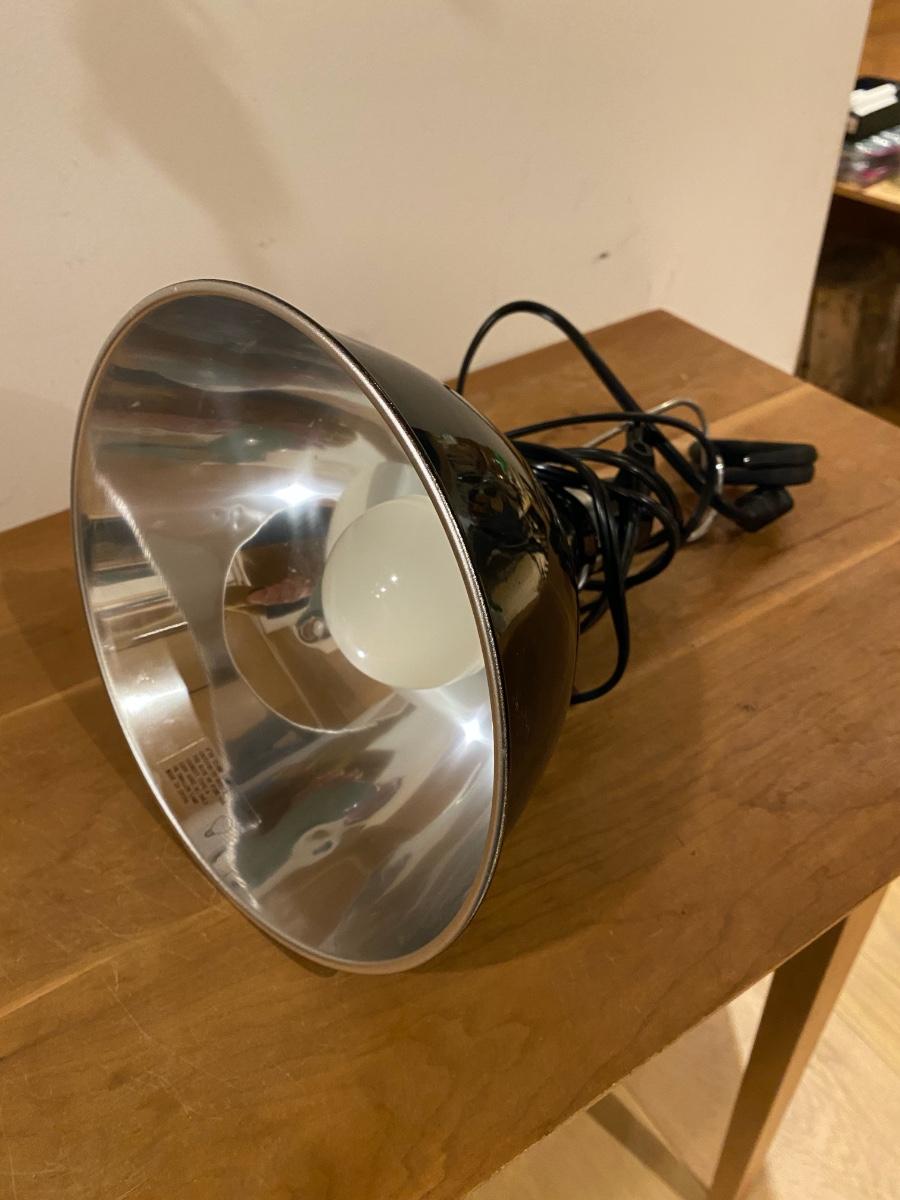 An 8" diameter clamp on grow light made of metal includes a 23Watt, 5000k compact fluorescent bulb with 10,000 hours of life. It is a full spectrum bulb that promotes overall plant growth. Used to grow lemons indoors. There are three of these available, sold separately.