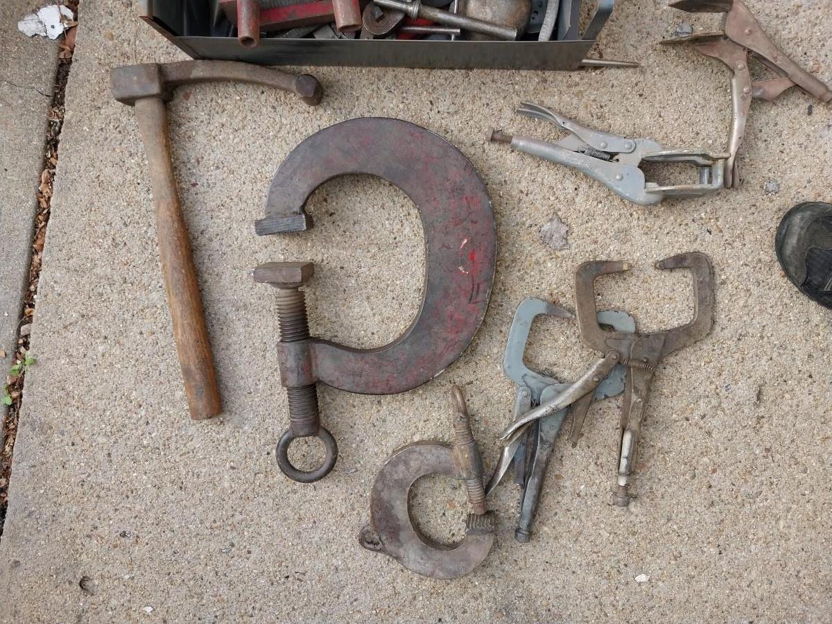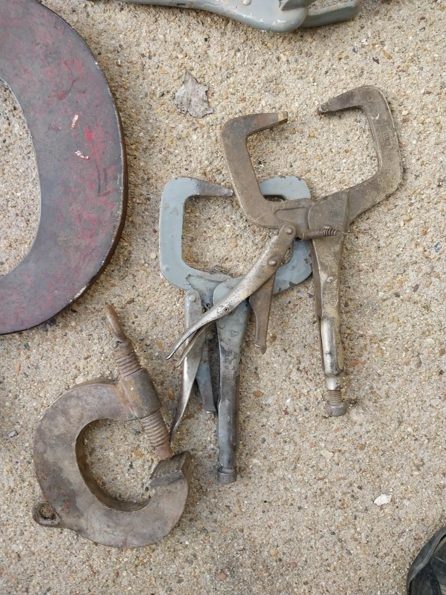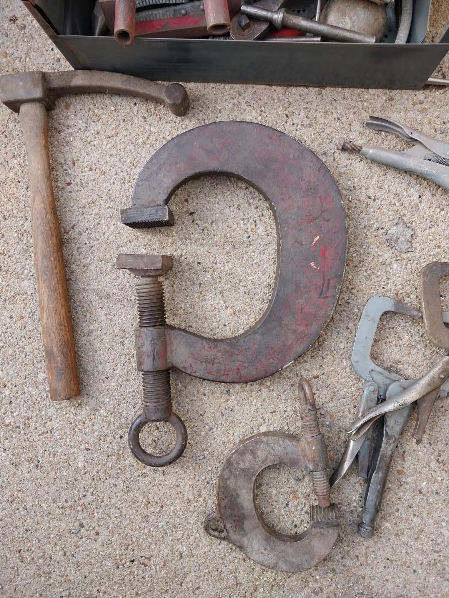 ONE HUGE HEAVY DUTY C CLAMPAND VARIETY OF OTHER TOOLS