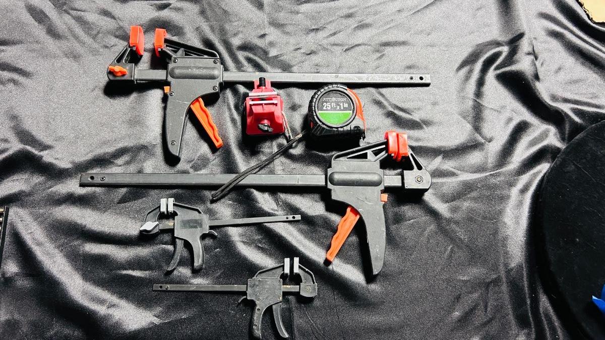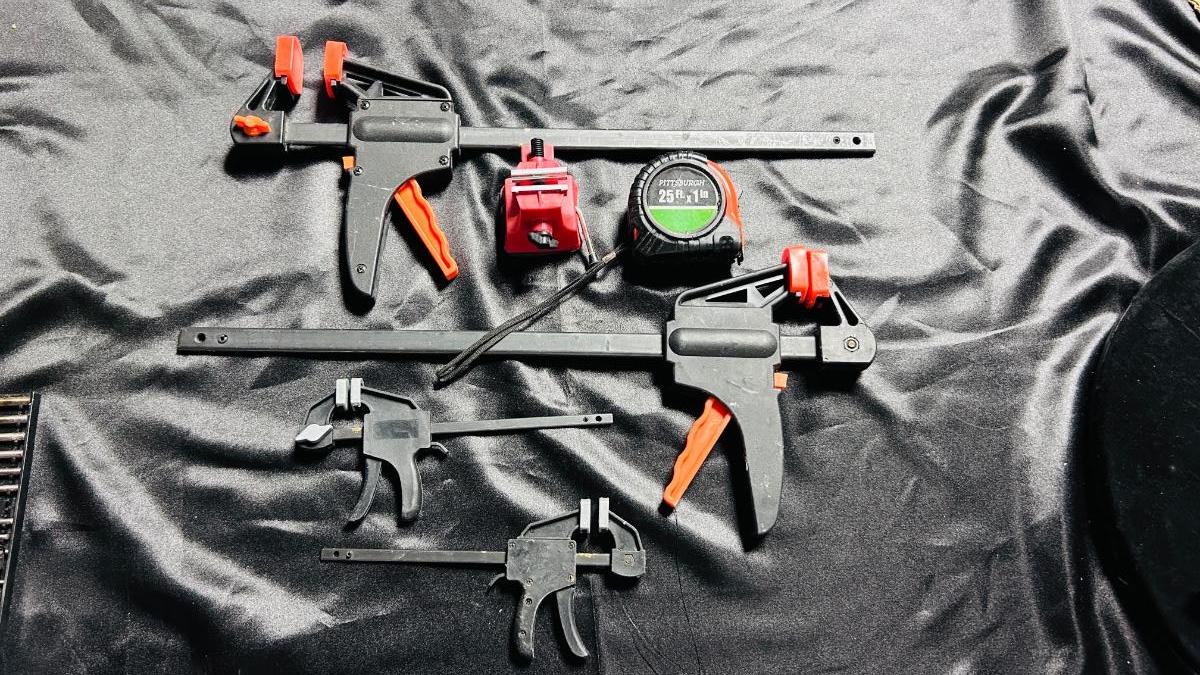 CLAMPS, TAPE MEASURE, VERY SMALL TABLETOP VISE