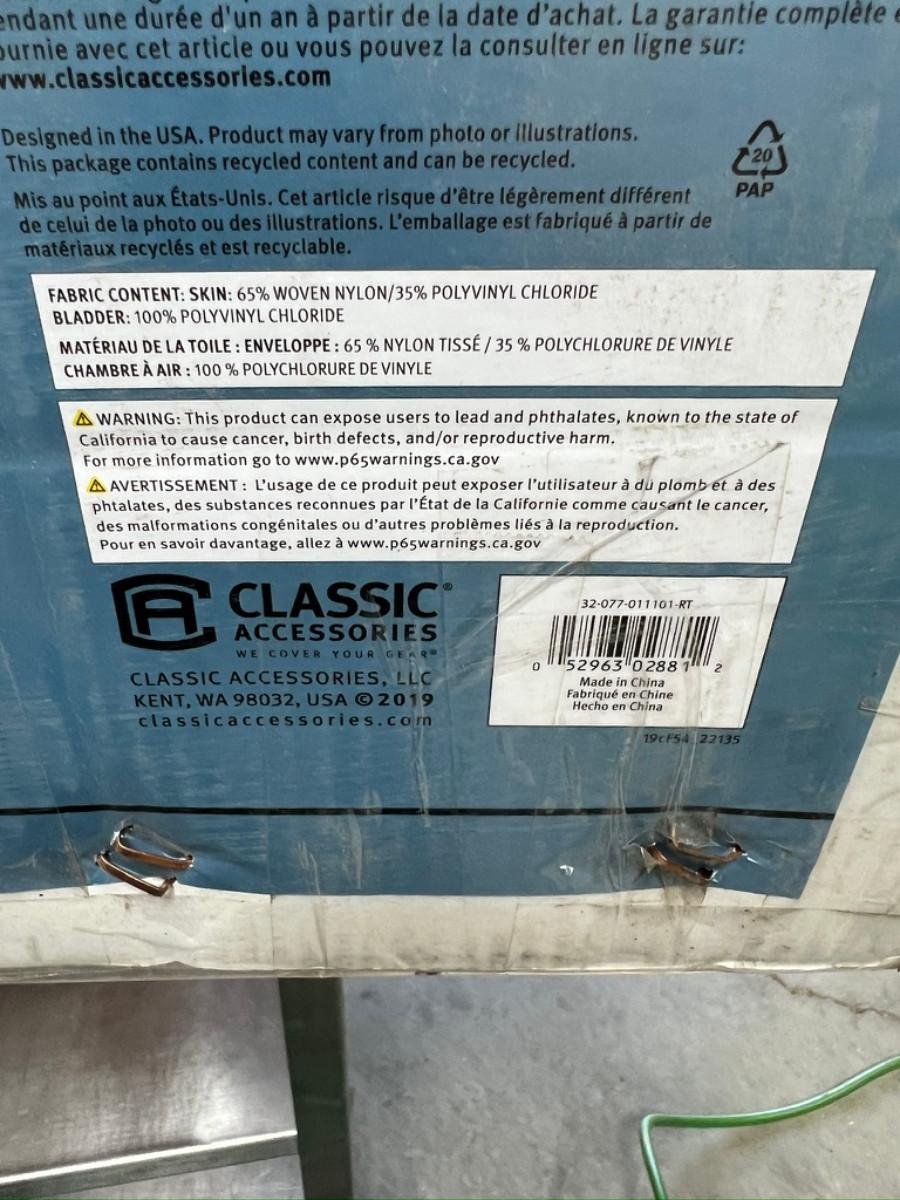Has one side that will not hold air needs to be patched otherwise new never used.