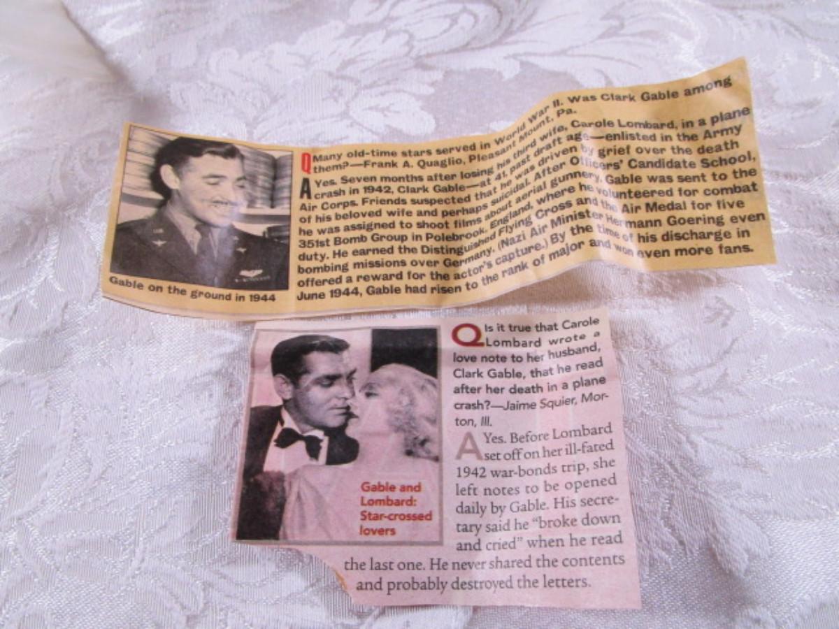 Gone With The Wind #H1510 with newspaper clippings about Clark Gable, 3-1/2" tall x 3-1/4" across