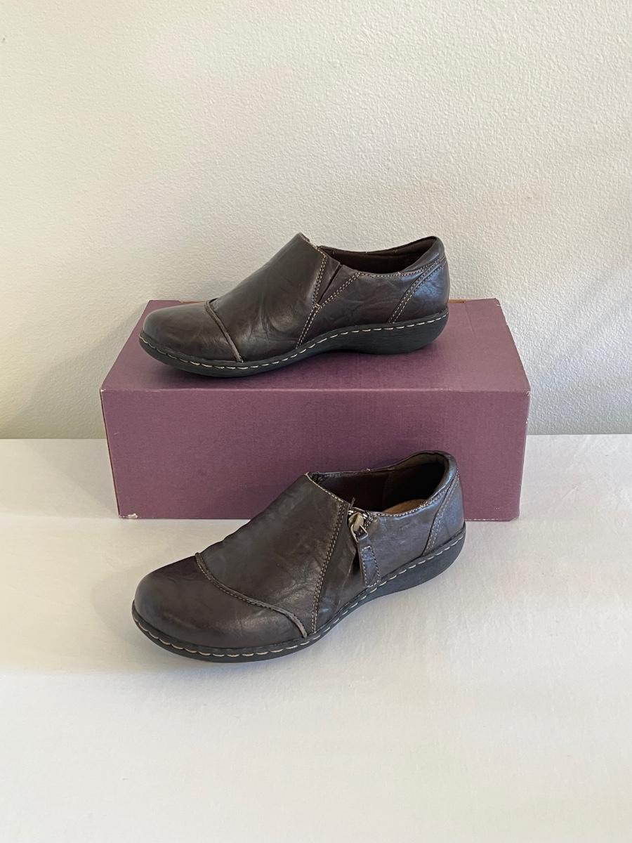 CLARKS ~ Brown Leather Slip-ons ~ Ladies Size 7 Wide