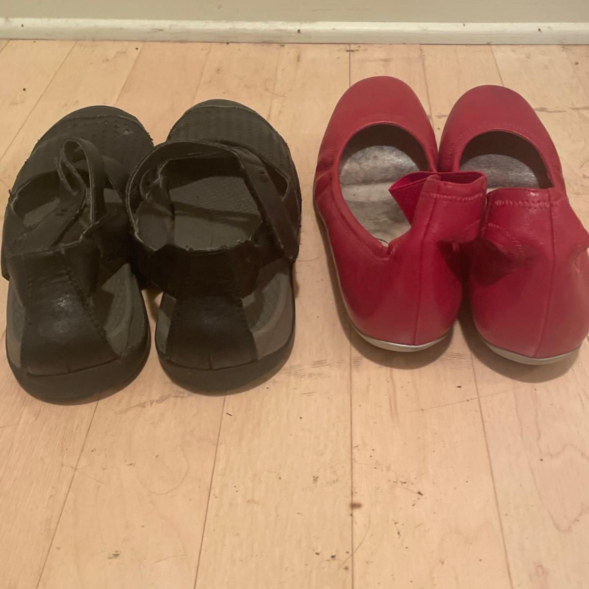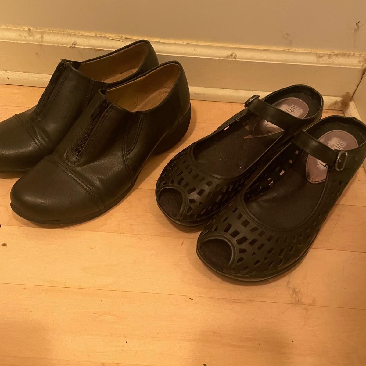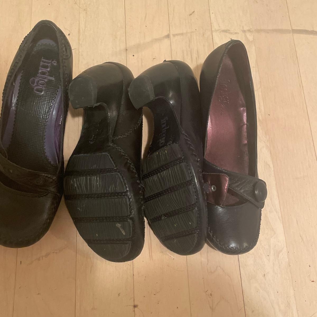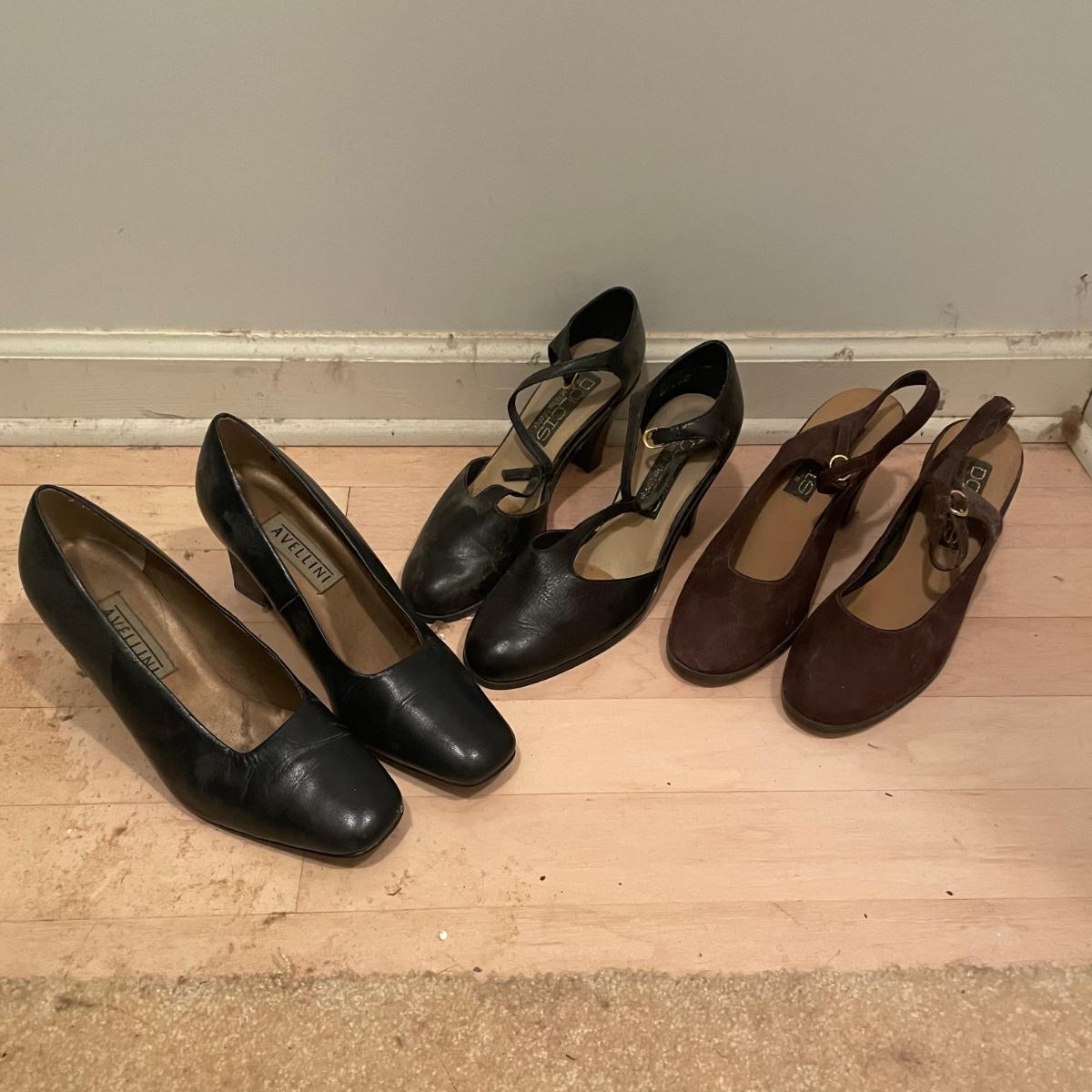 Lots of wear left in these 17 pairs of shoes. Great brand names such as Clarks, Naturalizer & more, see images. All shoes are in good condition. Many are leather with some canvas and suede as well. Shoe box does not belong with any pair of shoes in this lot. Sizes are photographed when found and sizes range from 8-8.5 with 1 pair of size 7.