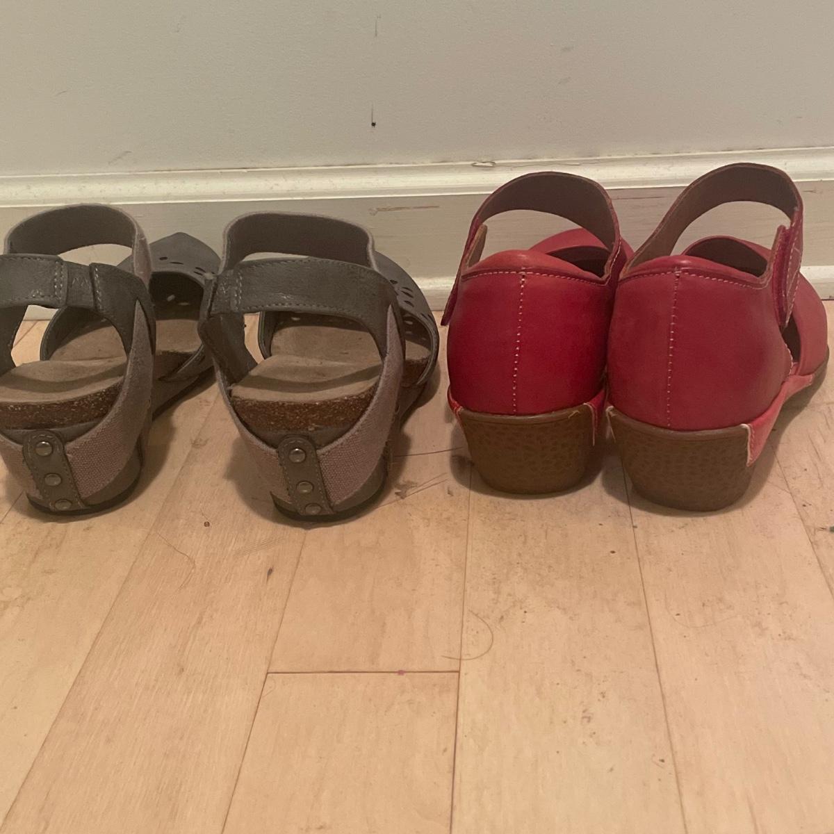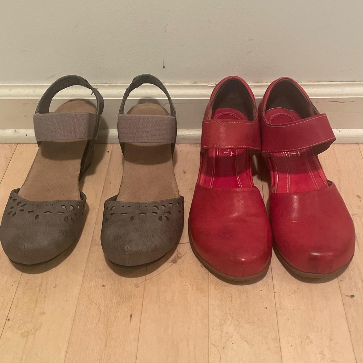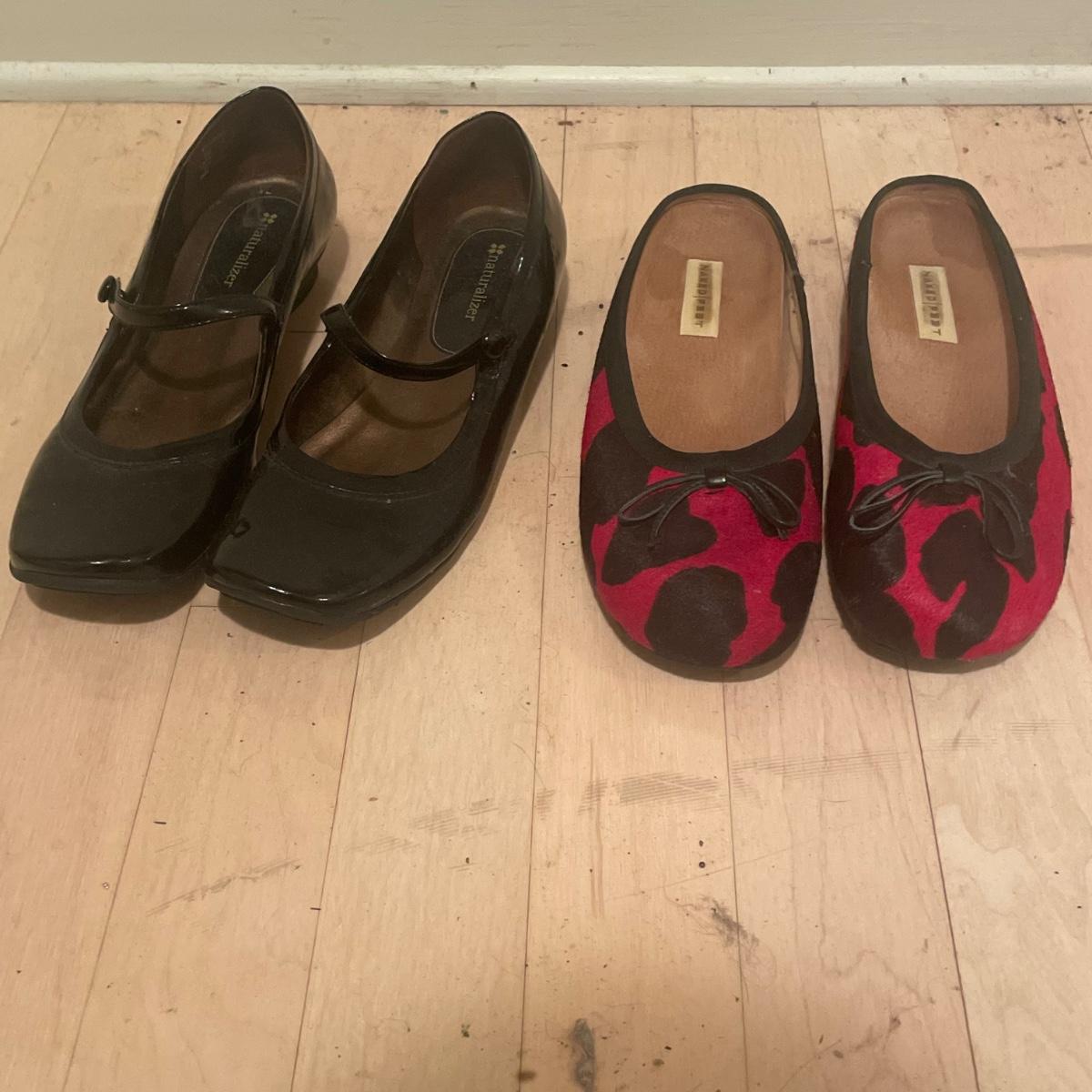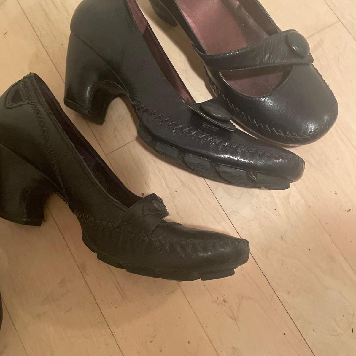 Lots of wear left in these 17 pairs of shoes. Great brand names such as Clarks, Naturalizer & more, see images. All shoes are in good condition. Many are leather with some canvas and suede as well. Shoe box does not belong with any pair of shoes in this lot. Sizes are photographed when found and sizes range from 8-8.5 with 1 pair of size 7.