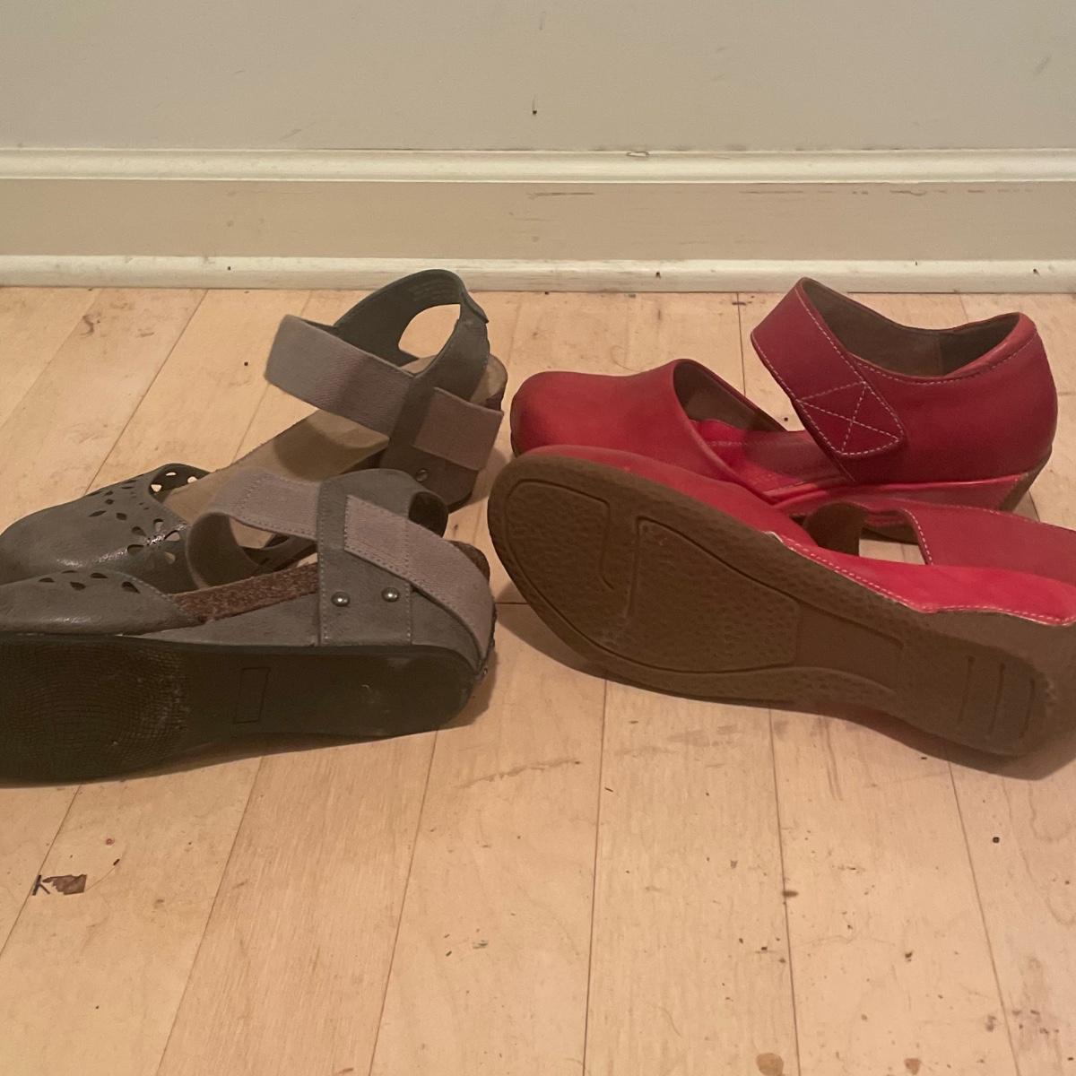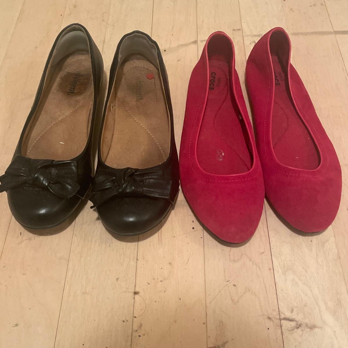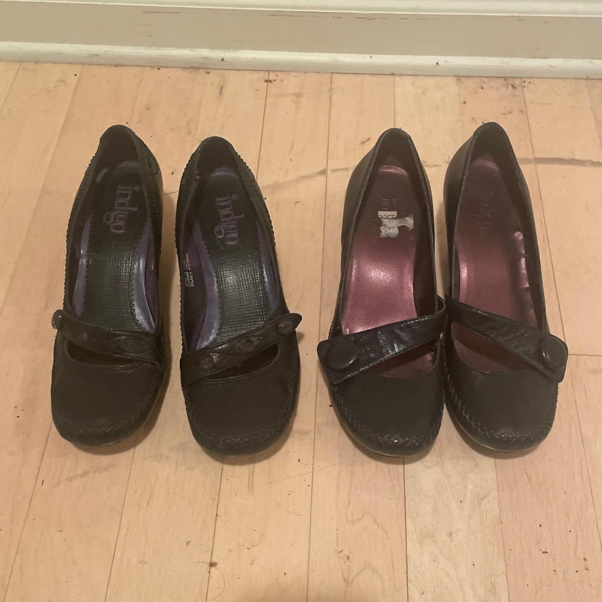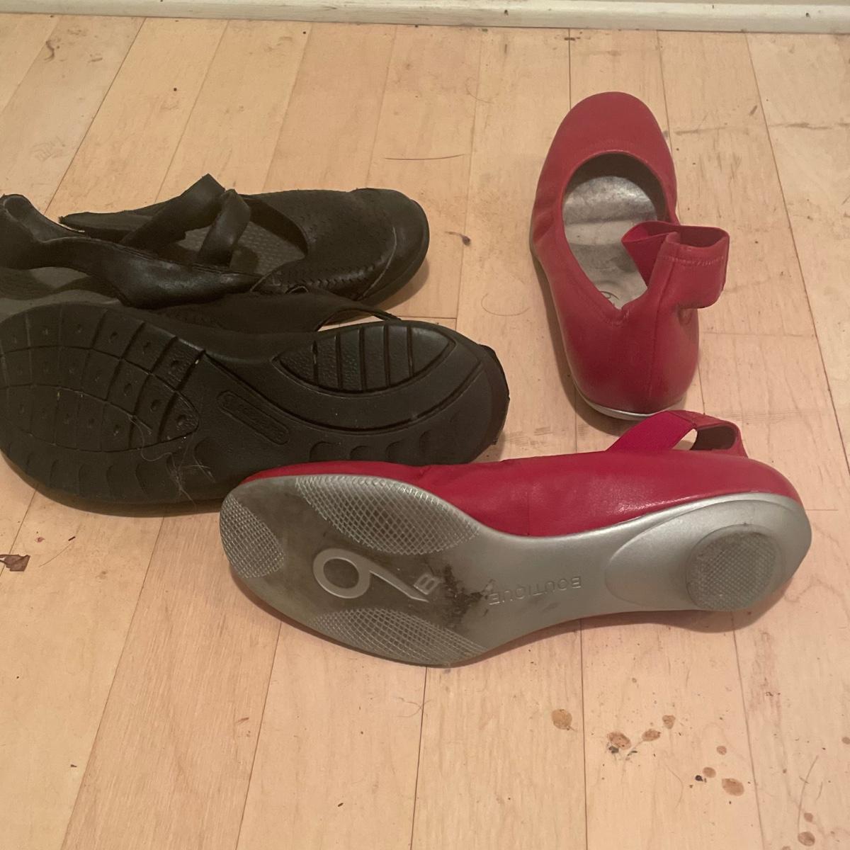 Lots of wear left in these 17 pairs of shoes. Great brand names such as Clarks, Naturalizer & more, see images. All shoes are in good condition. Many are leather with some canvas and suede as well. Shoe box does not belong with any pair of shoes in this lot. Sizes are photographed when found and sizes range from 8-8.5 with 1 pair of size 7.