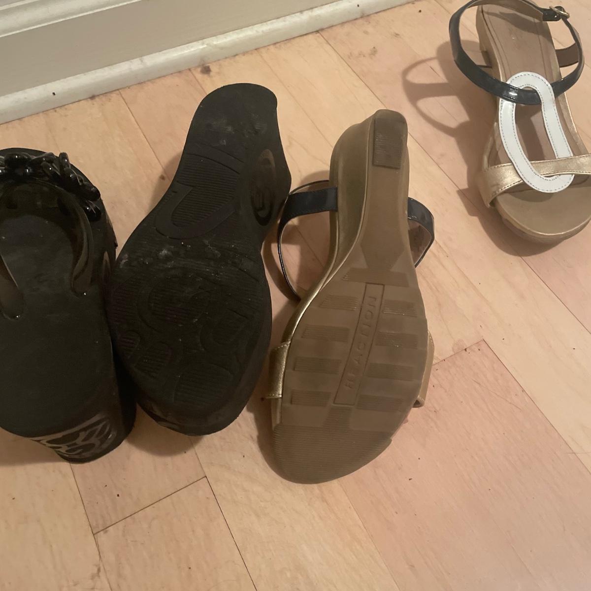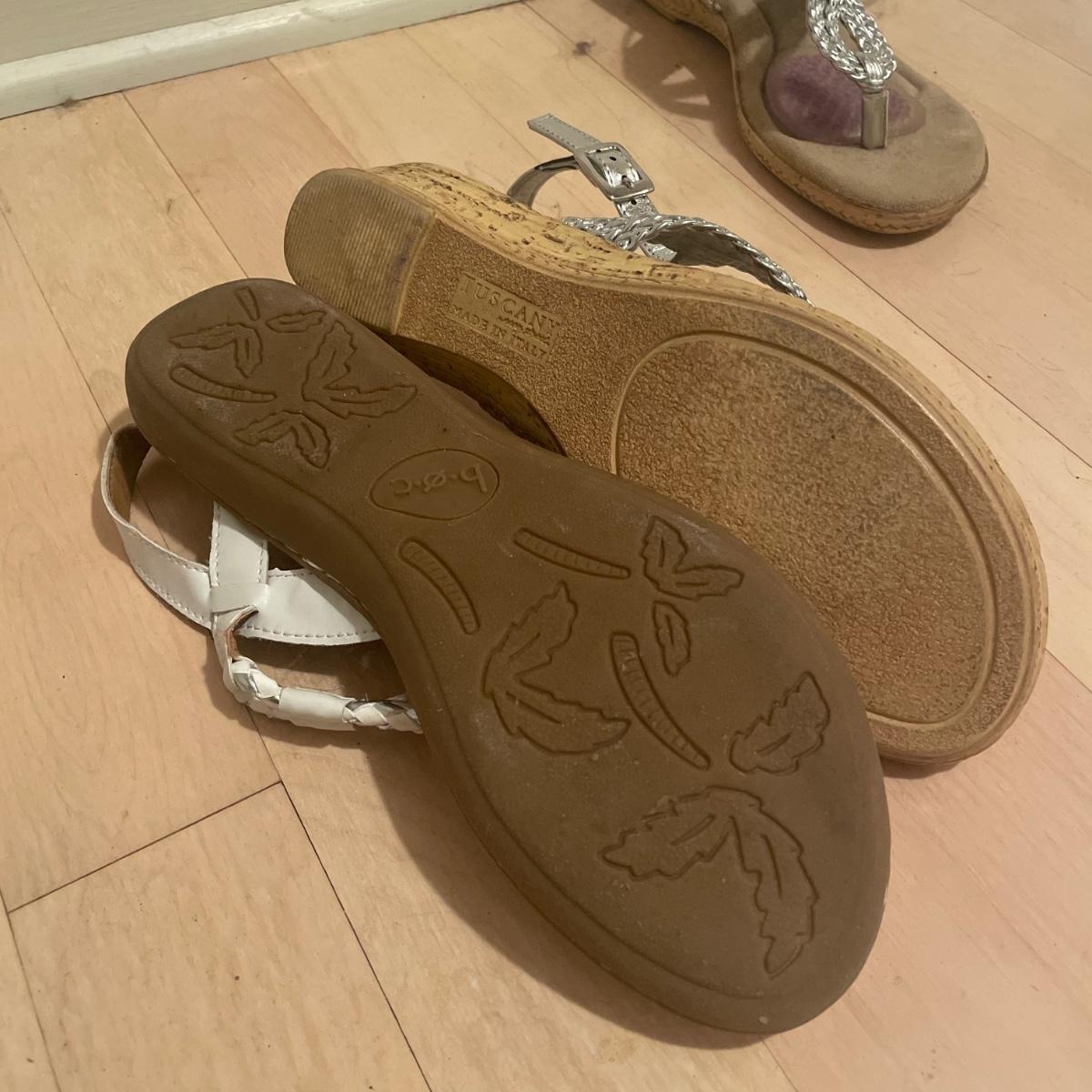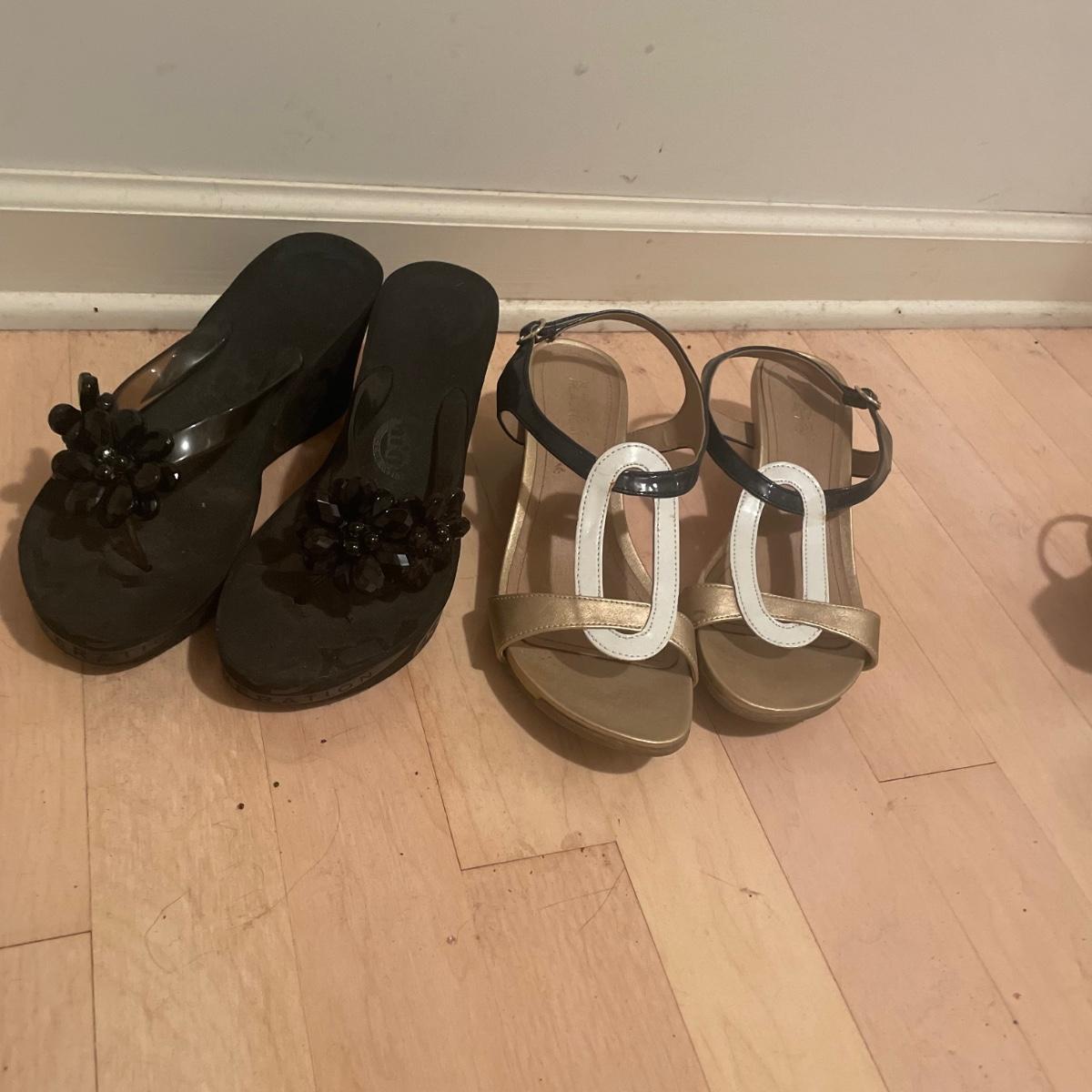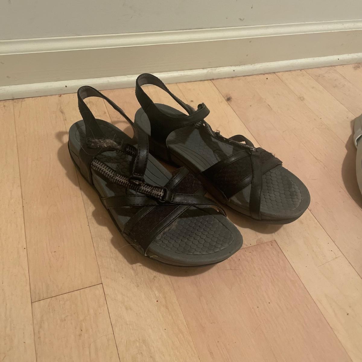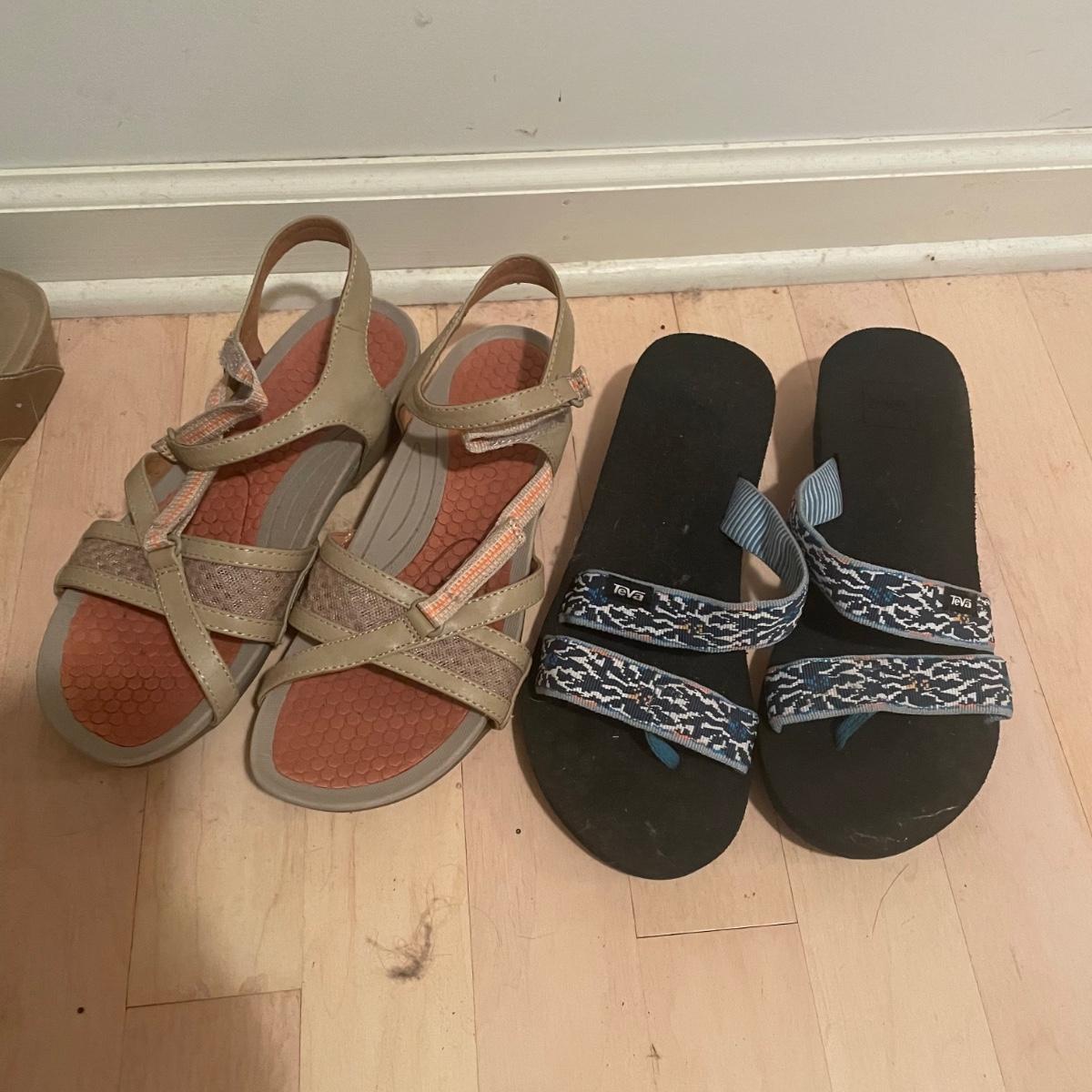 14 pairs of sandals here that are all in good condition; some are a little dusty/dirty. Great brand names include Clarks, Crocs, Kenneth Cole & more, see images. All appear to be between size 8 - 8.5 with the exception of the Clark’s Bendable sandals which are size 7.5.