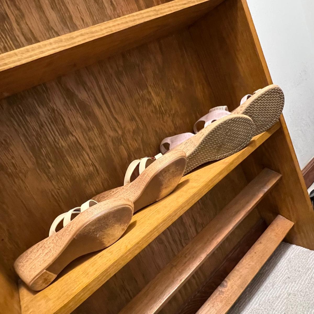 Twelve pairs of gently worn sandals in this lot of size 8.5 shoes. Great brand names in a range of styles from wedge heel to slides. See images for brands and sizes.