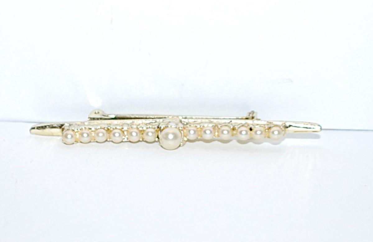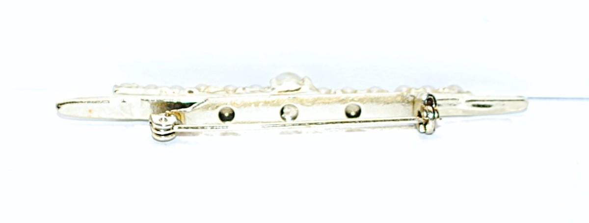 Classic 13 Faux Pearls BAR BROOCH (2½" x ¼") on a Gold Tone Setting