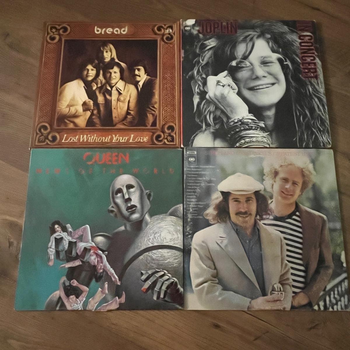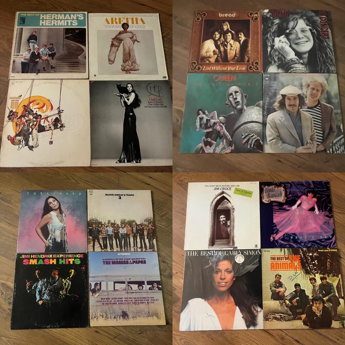 This collection of over thirty 60s & 70s vinyl albums includes Janis Joplin, Aerosmith, Bread, Simon & Garfunkel, Beach Boys, Neil Diamond and more.