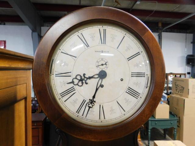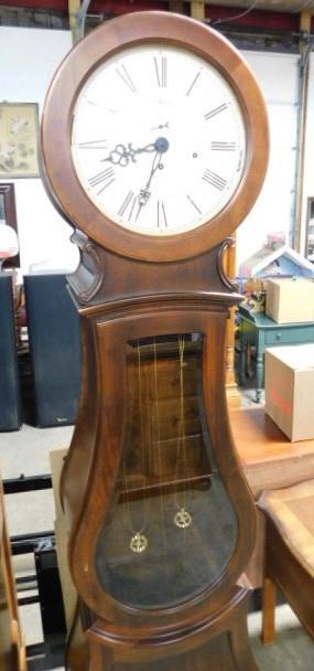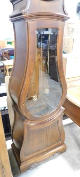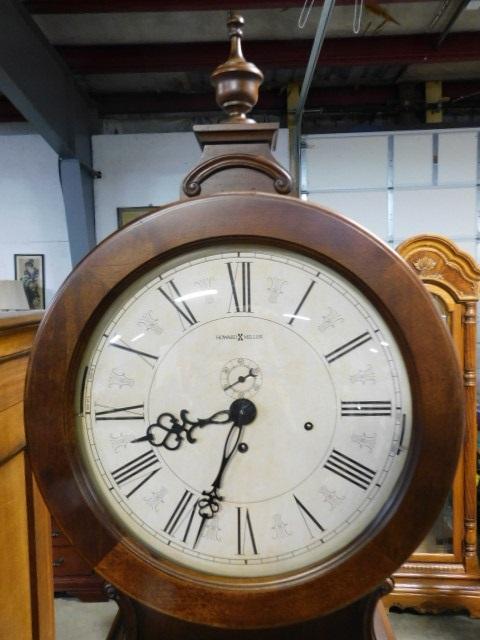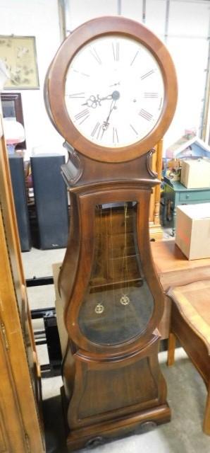 Classic Banjo Body Howard Miller Walnut Cabinet Grandfather Clock with Weights and Pendulum 86" with Finial