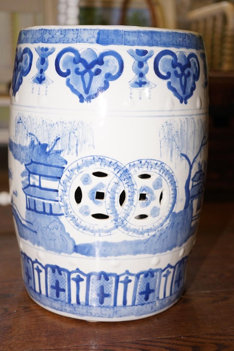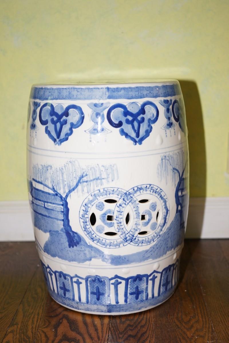 CLASSIC BLUE AND WHITE GLAZED CERAMIC ASIAN STYLE GARDEN STOOL