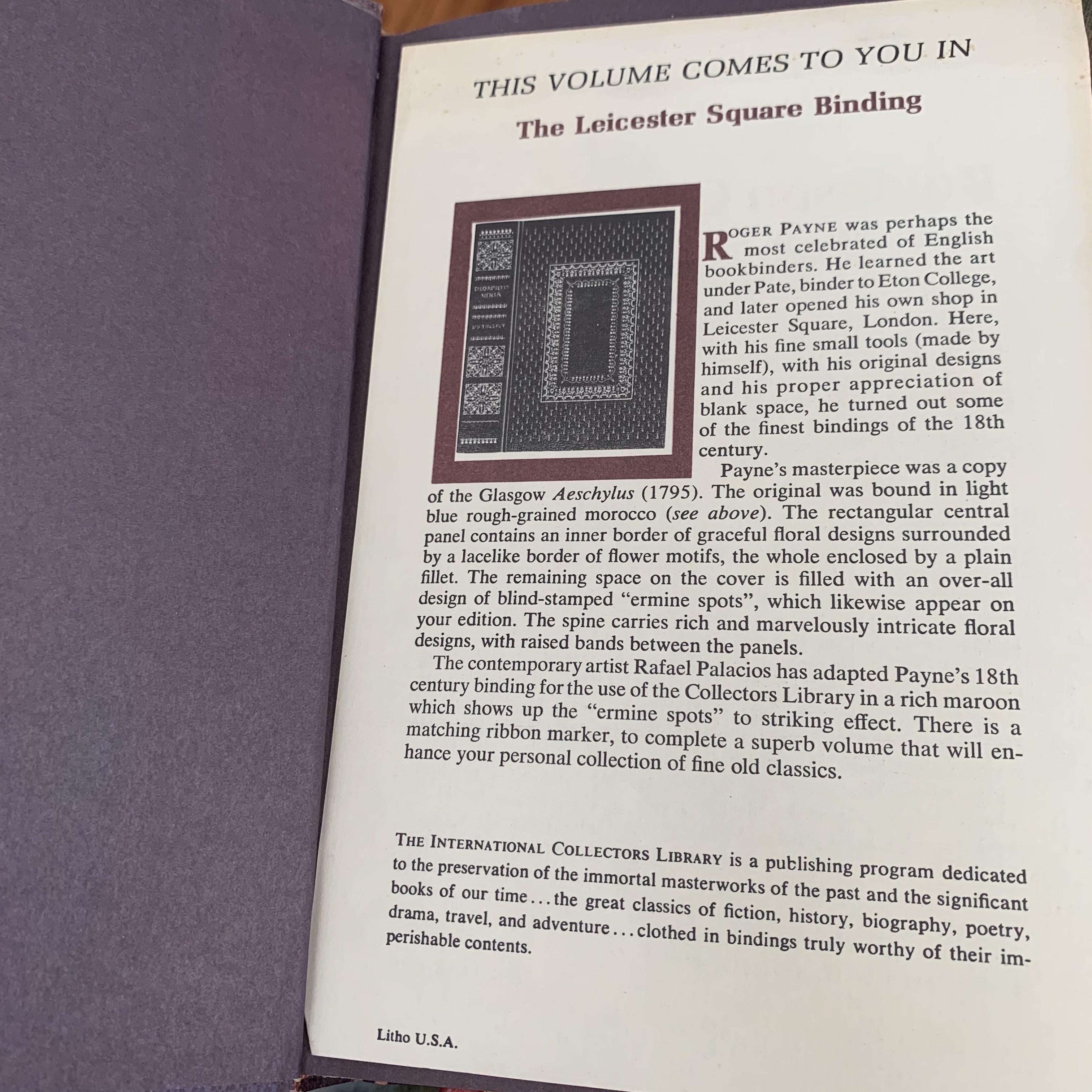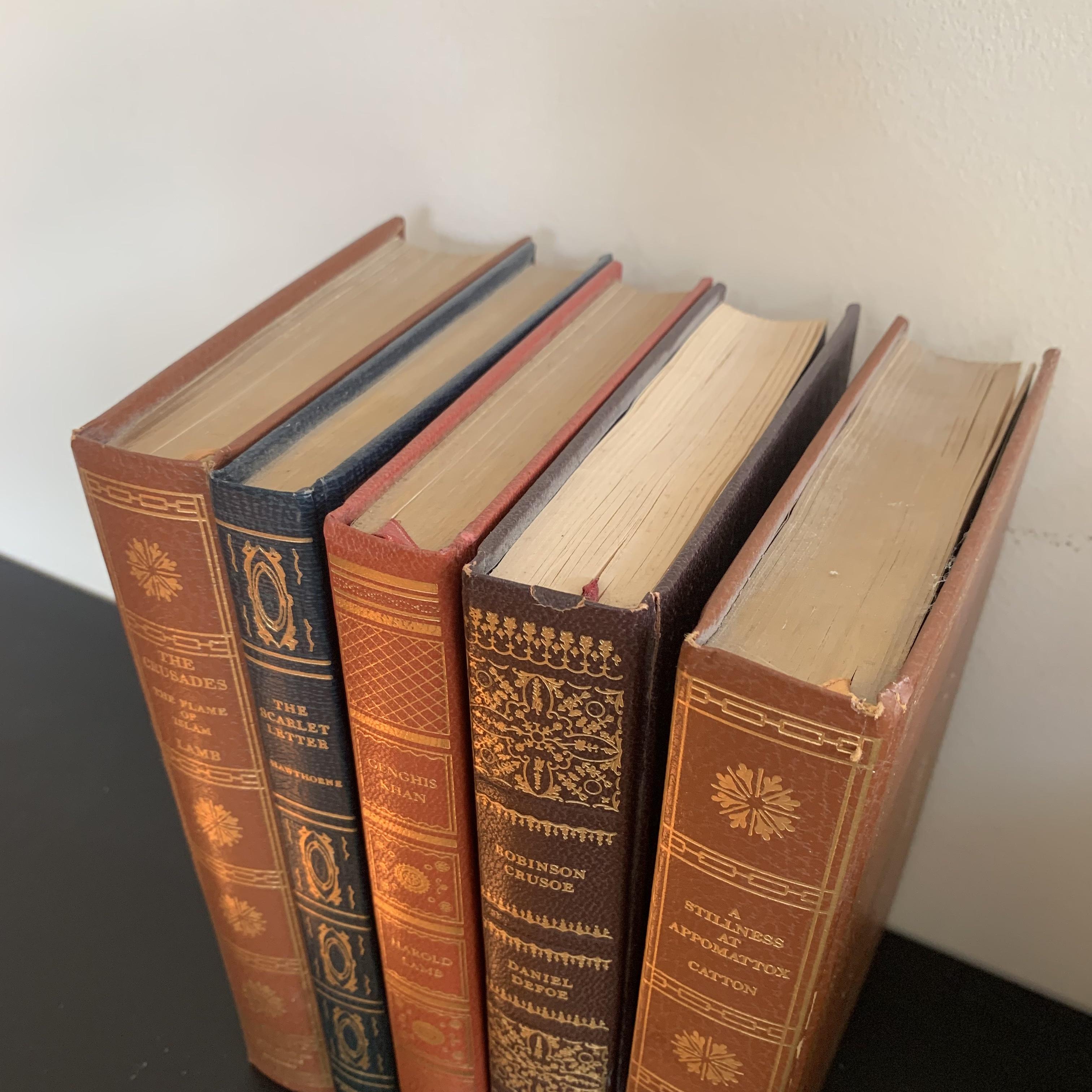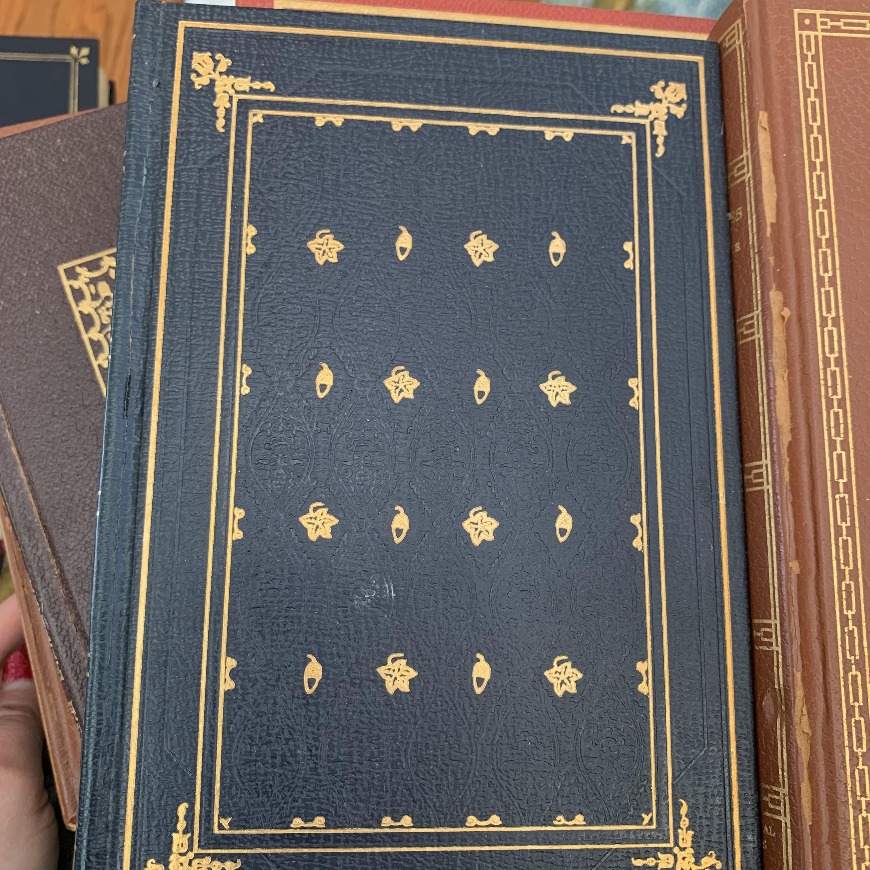 Ten classic hardcover books from the International Collector’s Library, Nelson Doubleday, & Scribners. The books appear to be leather bound (except the F. Scott Fitzgerald’s). A few of the books have leaflets that state there is 24K gold on the bindings. There is some wear seen on the corners and they are a bit dusty. Please see photos for book titles and information.