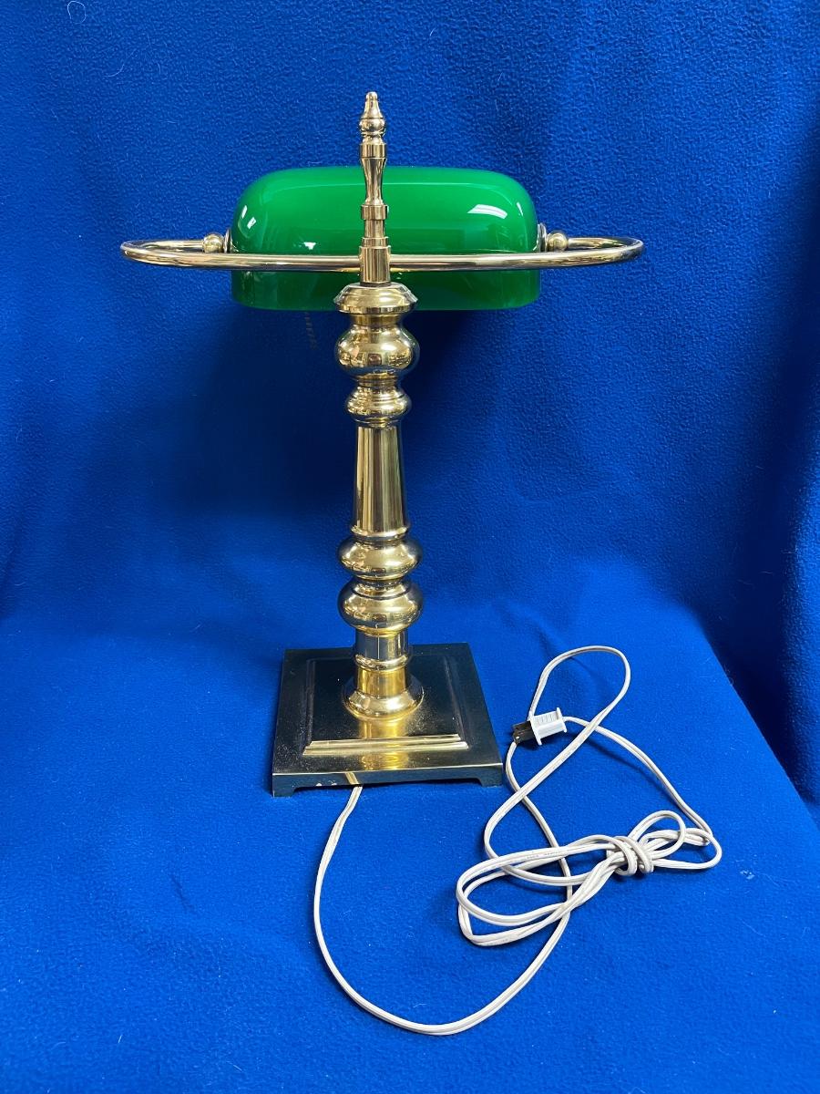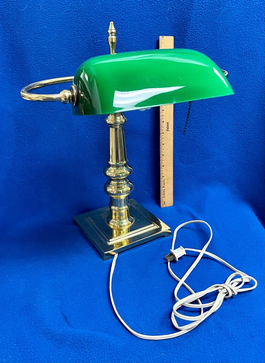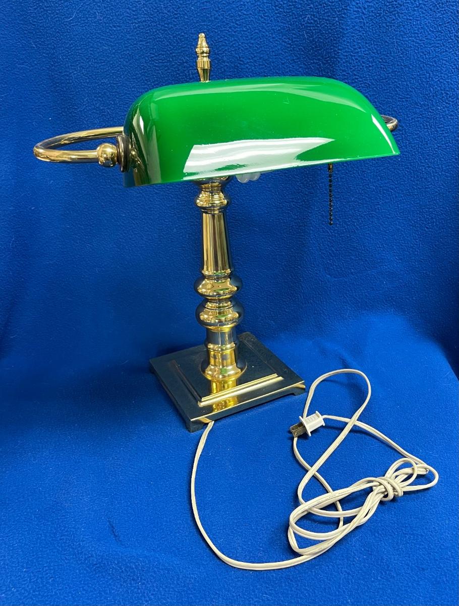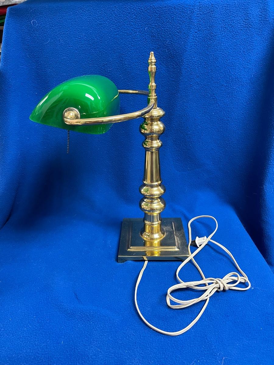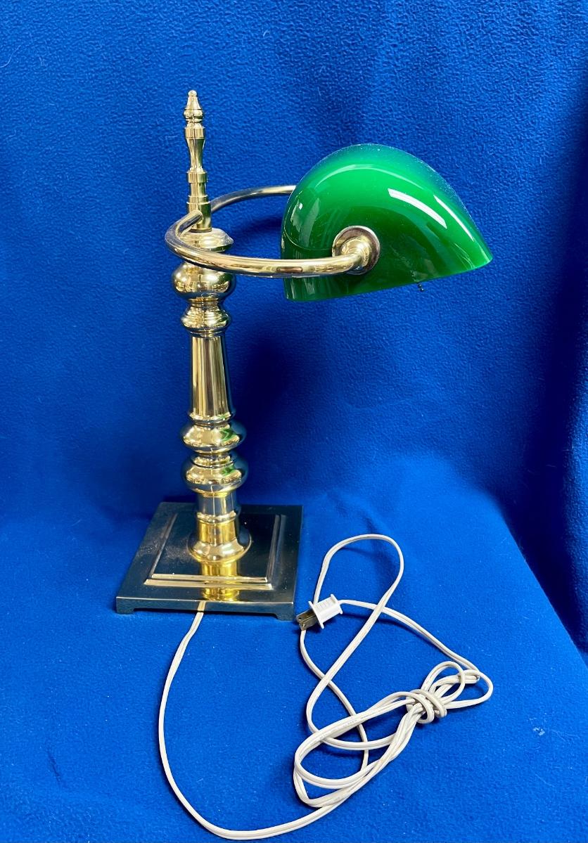 Classic Brass Bankers Desk Lamp with Green Glass Shade. Good condition, no chips in shade.