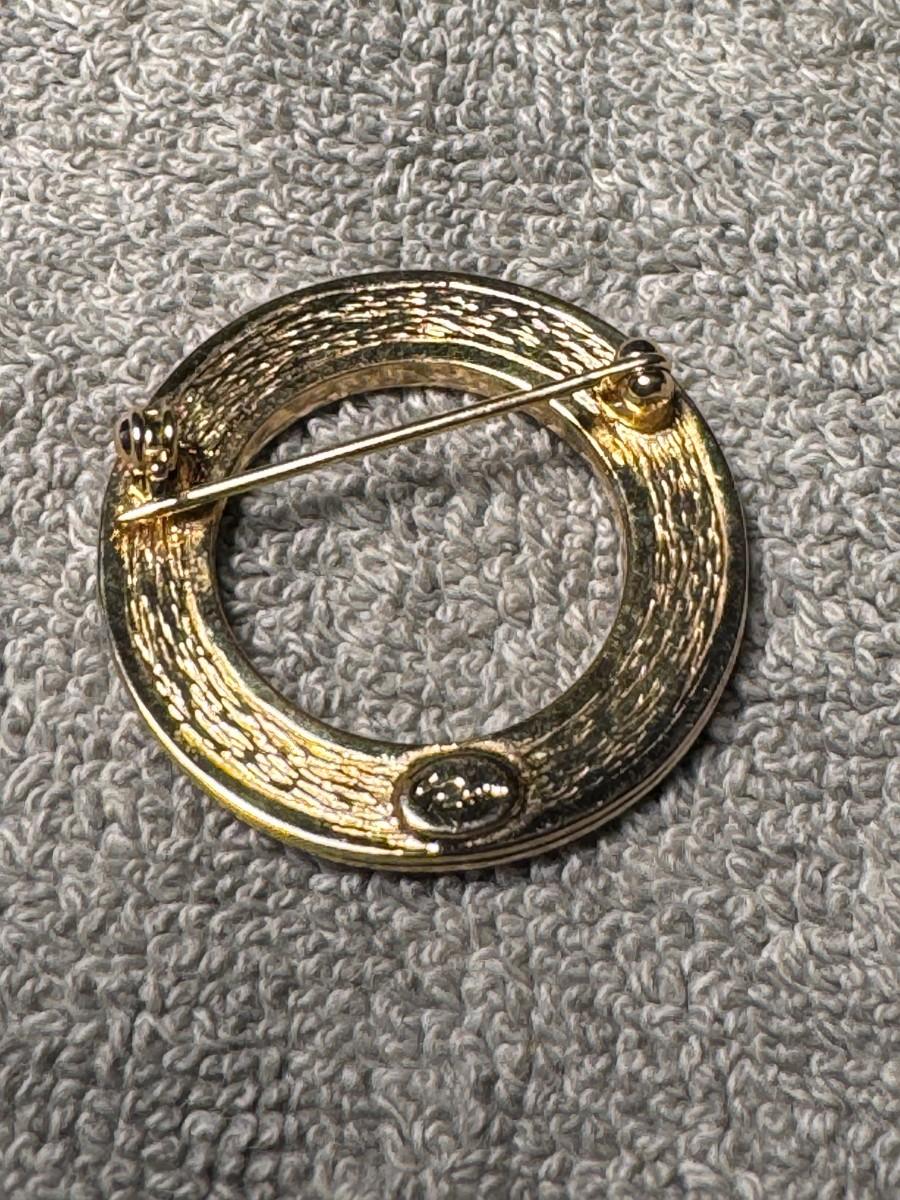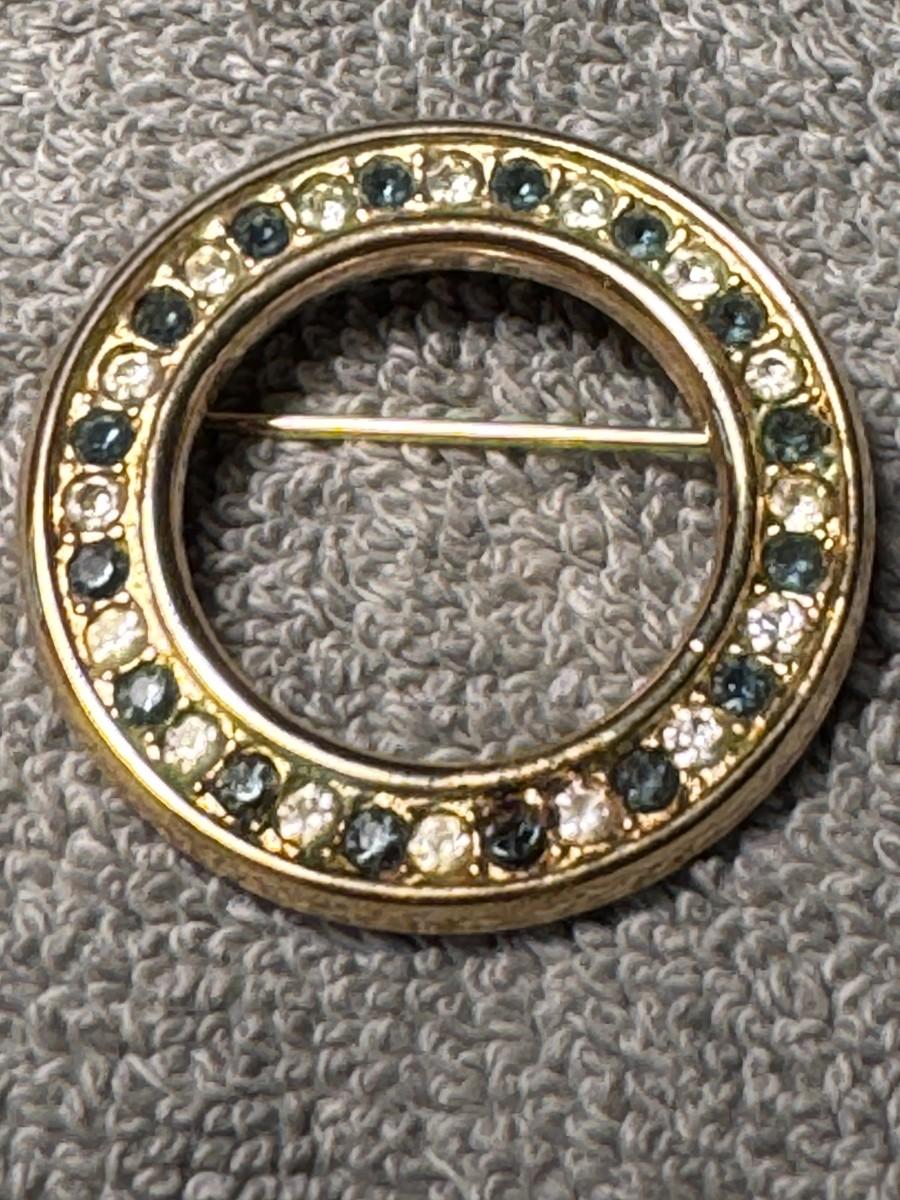 vintage gold tone rhinestone circle brooch.