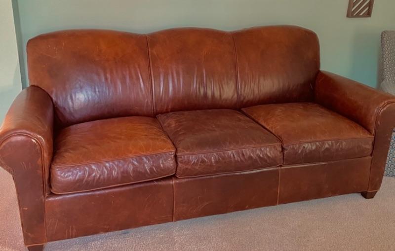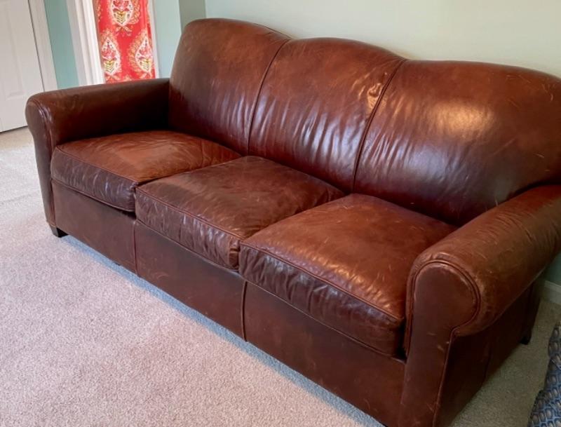 Classic Club Leather Sofa - Perfect Patina & Shape - By Crate & Barrel
