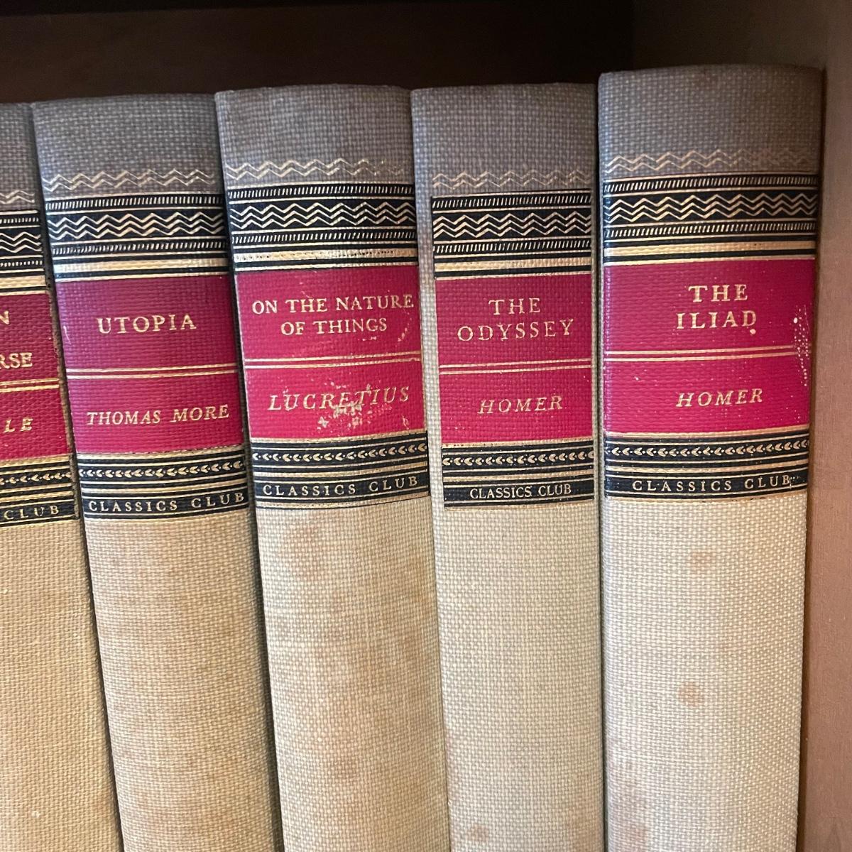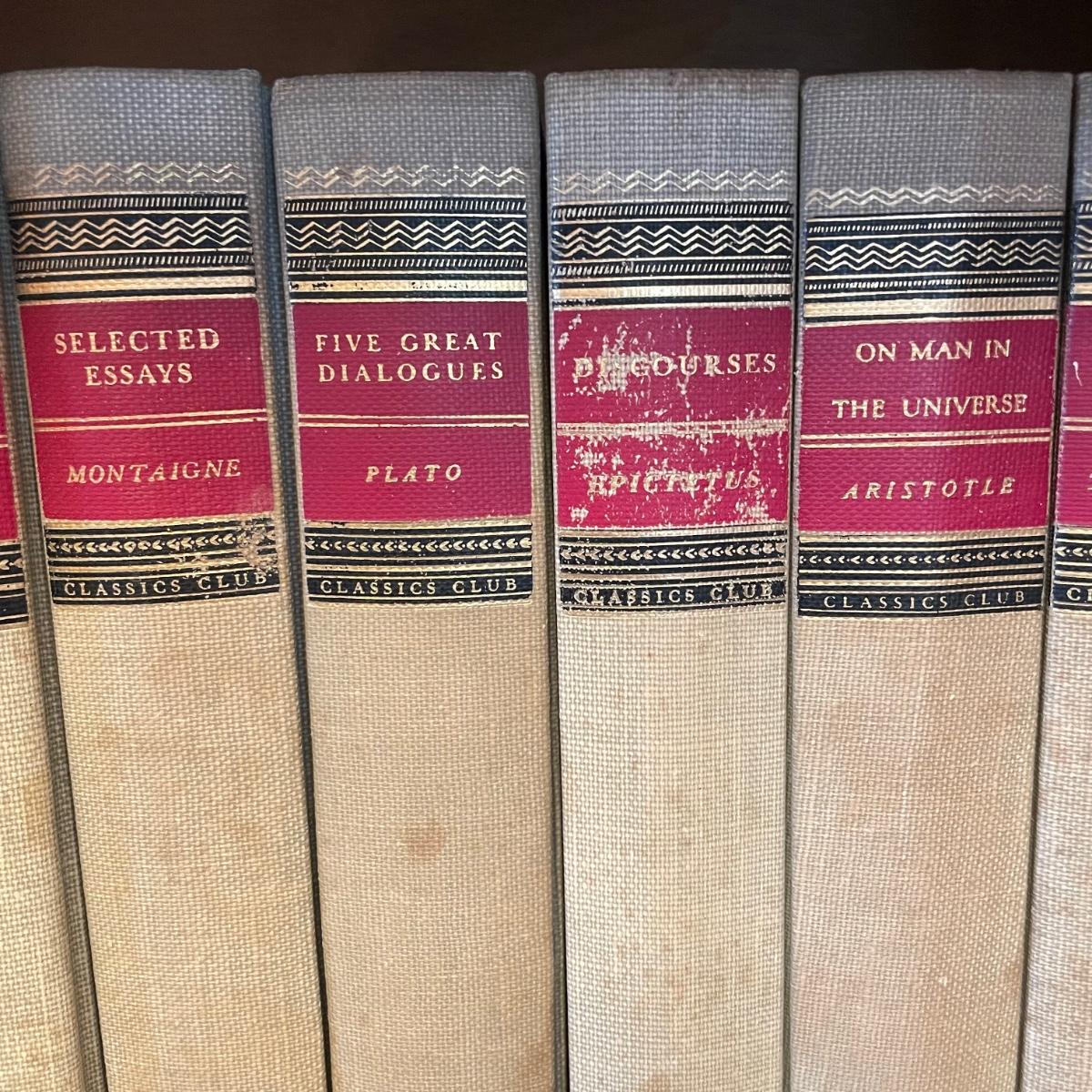 Nine books from the Classic Book Club including The Iliad and Odyssey by Homer, books by Plato, Aristotle and more. Lot also features Lewis Carroll’s Through the Looking Glass and Adventures in Wonderland, Doctor Zhivago and more. Also a pair of world globe bookends on wood bases that are 5.5” x 3.5” x 5.75”H. See photos for all titles and examples of conditions. Shipping available.