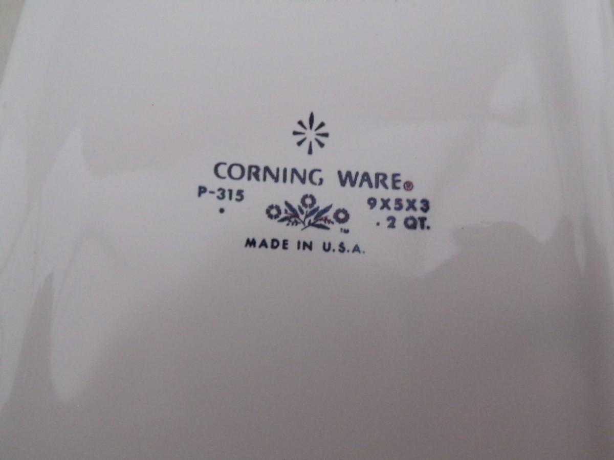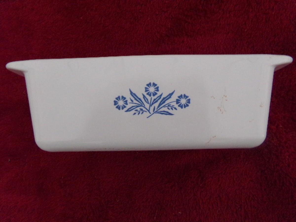 Classic Corning Ware bread baking pan (dish). Labeled 2 qt. It’s about 9"x5"x3" deep inside.