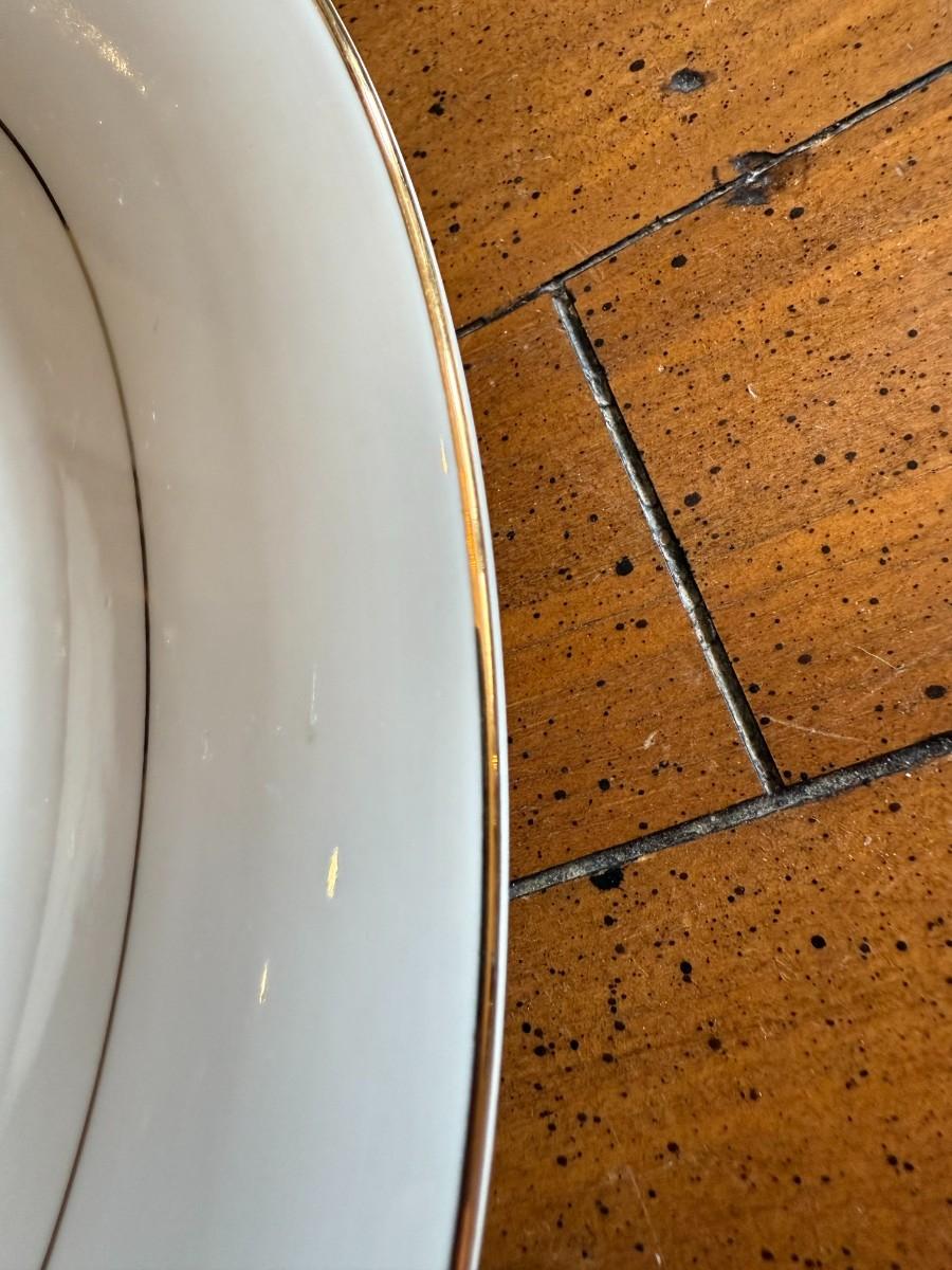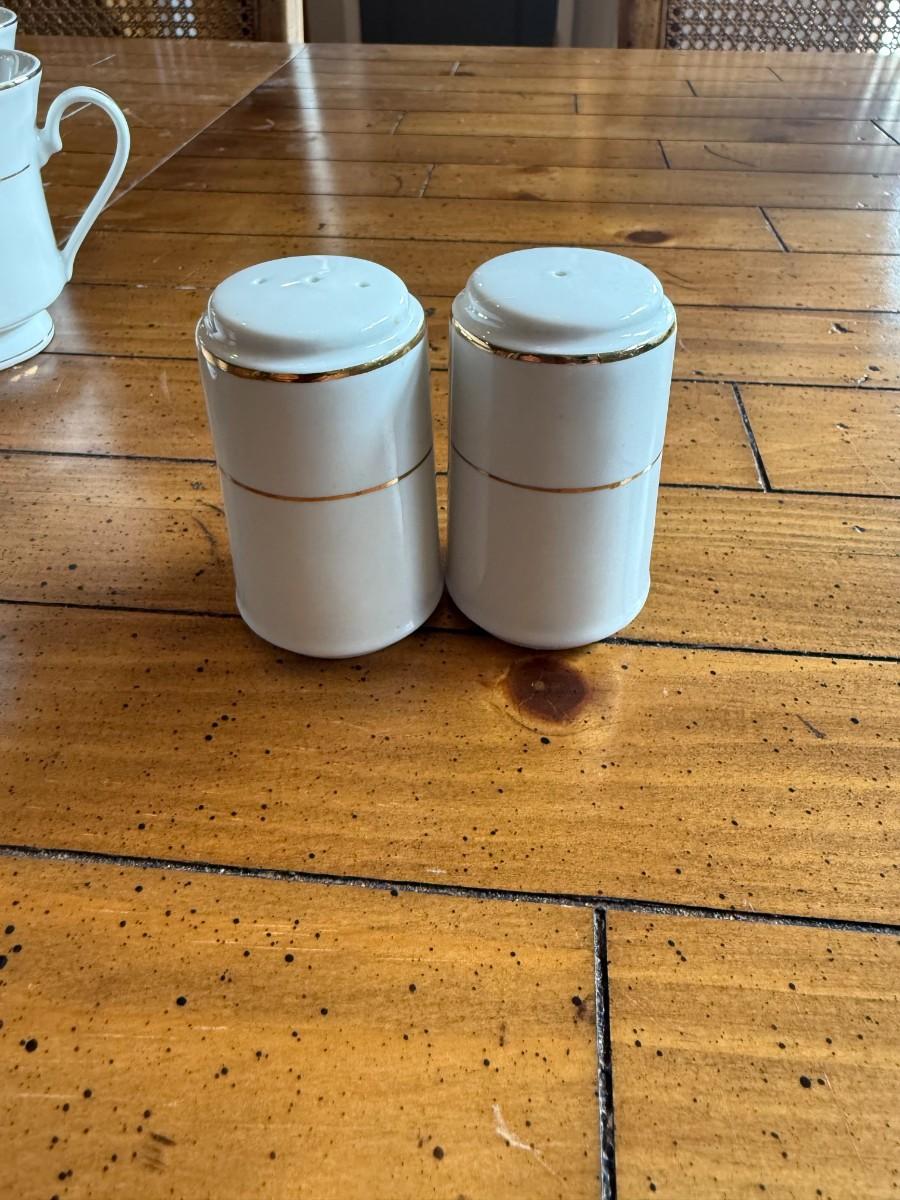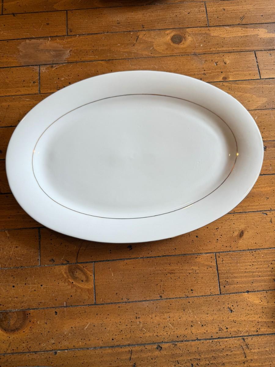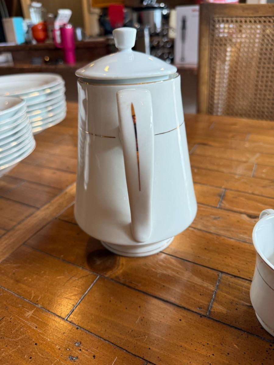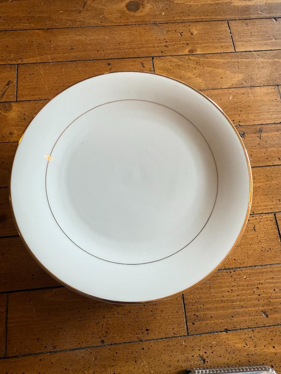 Timeless and refined, this 1995 “Classic Elegance” fine china set by The Cellar includes dinner plates, salad plates, bowls, cups, a teapot, creamer, sugar bowl, and serving pieces. White with a thin gold rim, perfect for formal dining or holiday gatherings.