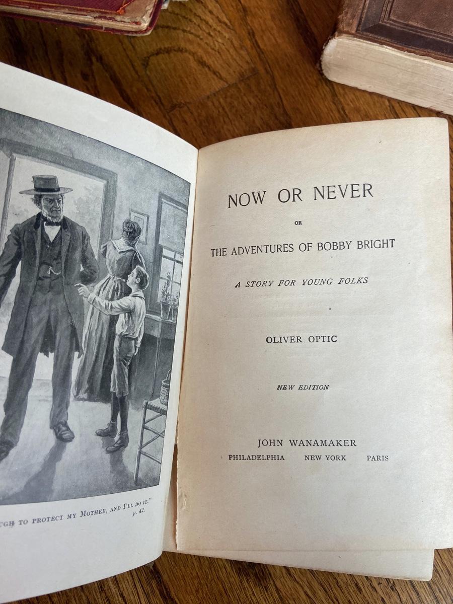 Now or Never The Adventures of Bobby Bright : A story for Young Folks by Oliver Optic (1856), Grey Hardcover.