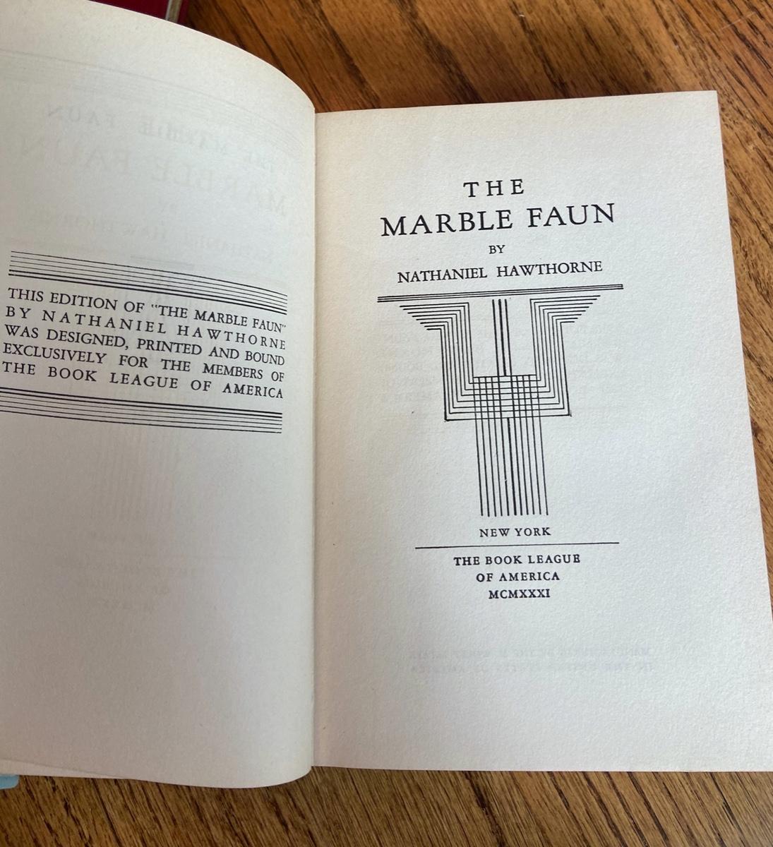 The Marble Faun by Nathaniel Hawthorne (1931), the Book League of America, blue hardcover, some fading but good condition.