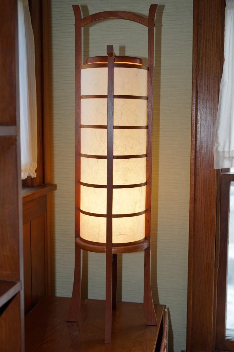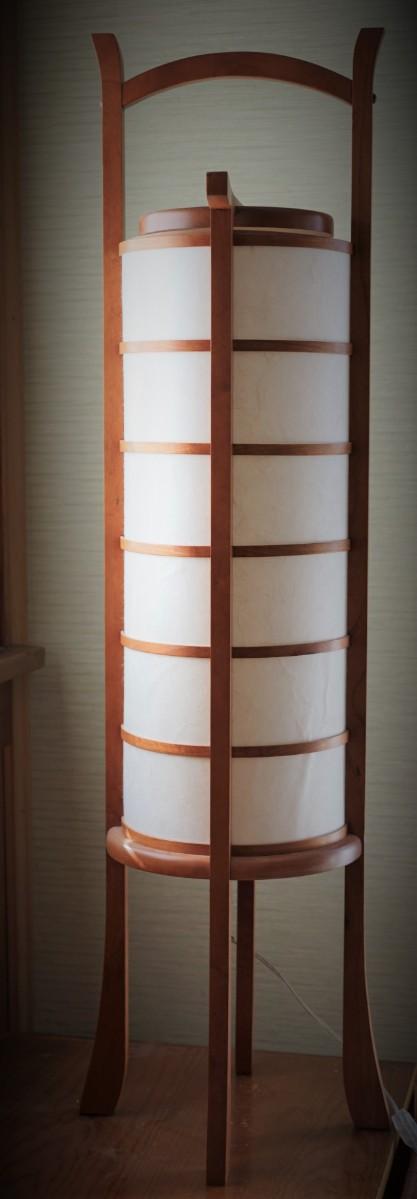 Mid century style lamp , smaller tower style lamp. Cherry framing.