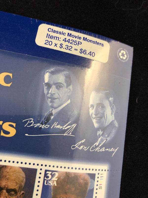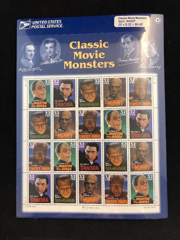 Classic Movie Monsters US Stamp Uncirculated Full Sheet 20 Stamps