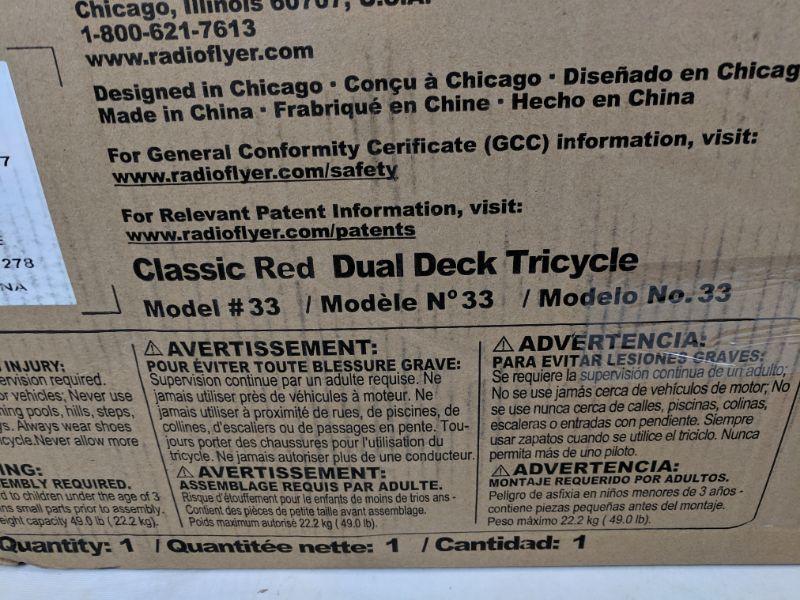 Classic Red Dual Deck Tricycle, Radio Flyer, Box Open/Complete - New
