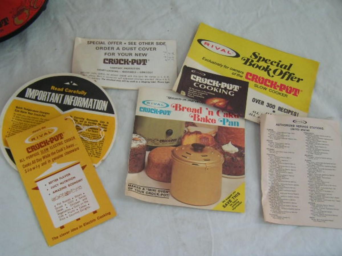 More classic small appliances like this elsewhere in this sale. CLASSIC Rival Crock Pot with a “Crock Pot” “Bread ‘n Cake Bake” metal baking insert that looks unused. 3-1/2qt. ALL the original paperwork and Crock Pot Cook Book are still with it in the ORIGINAL BOX. Looks clean and nice inside and out. Looks scarcely used!