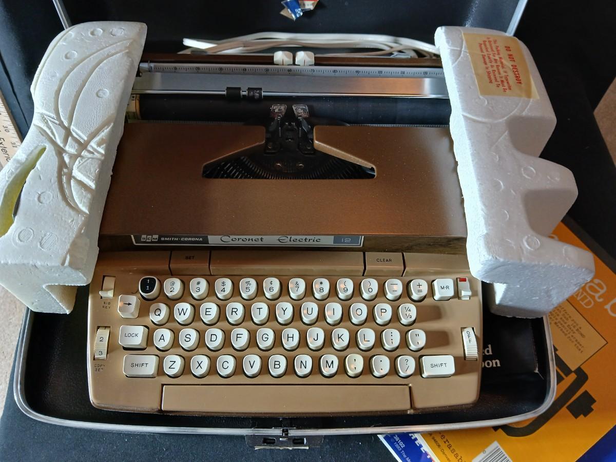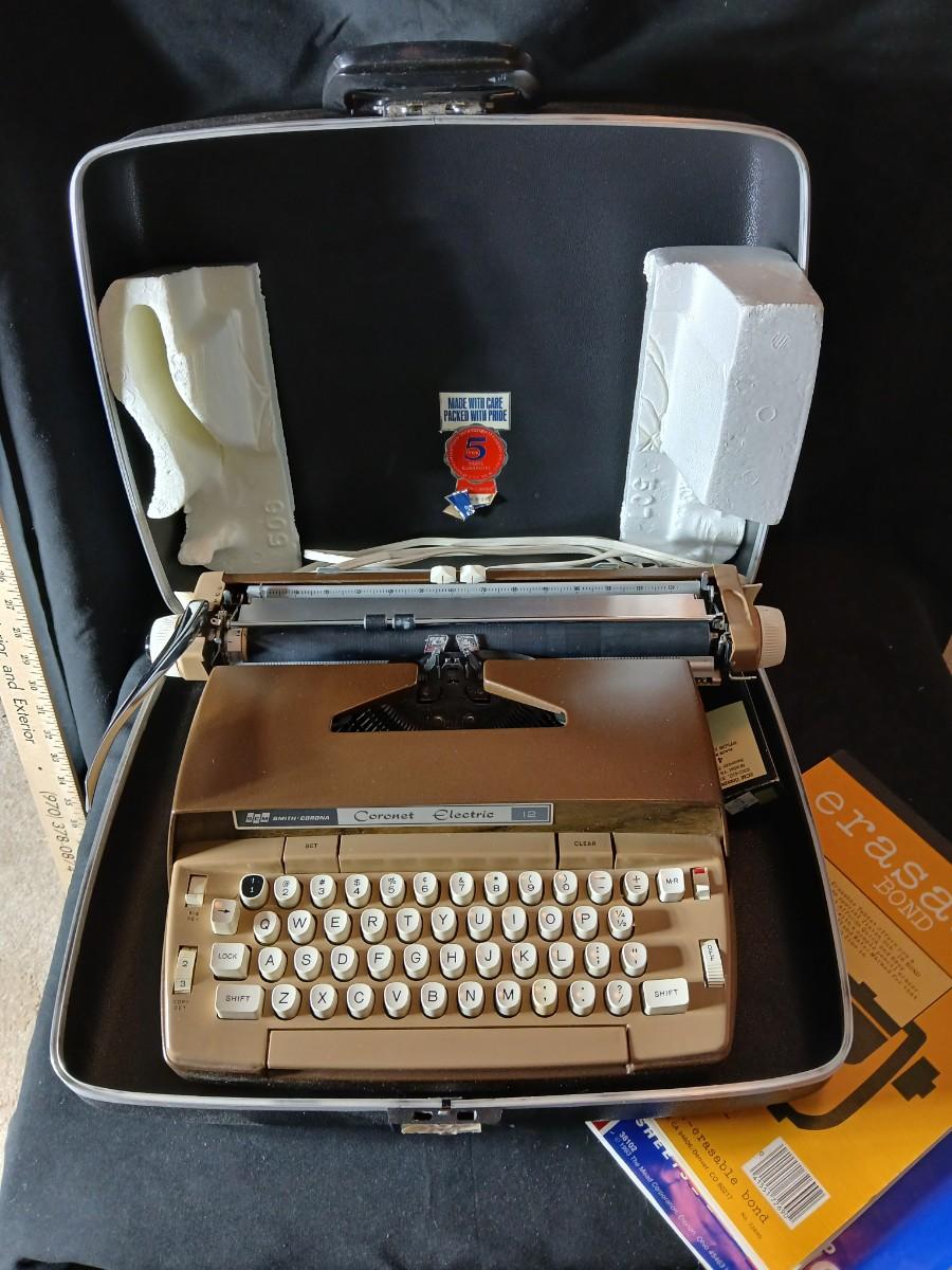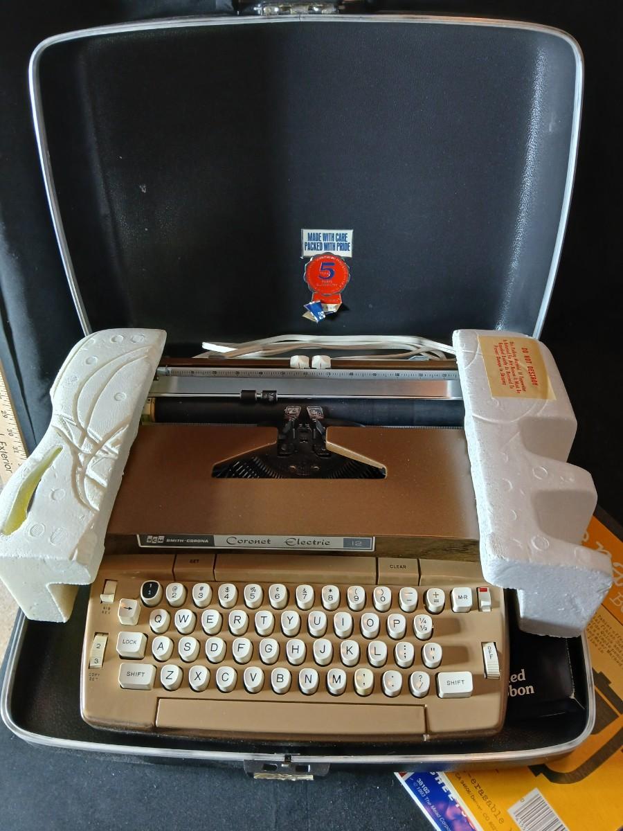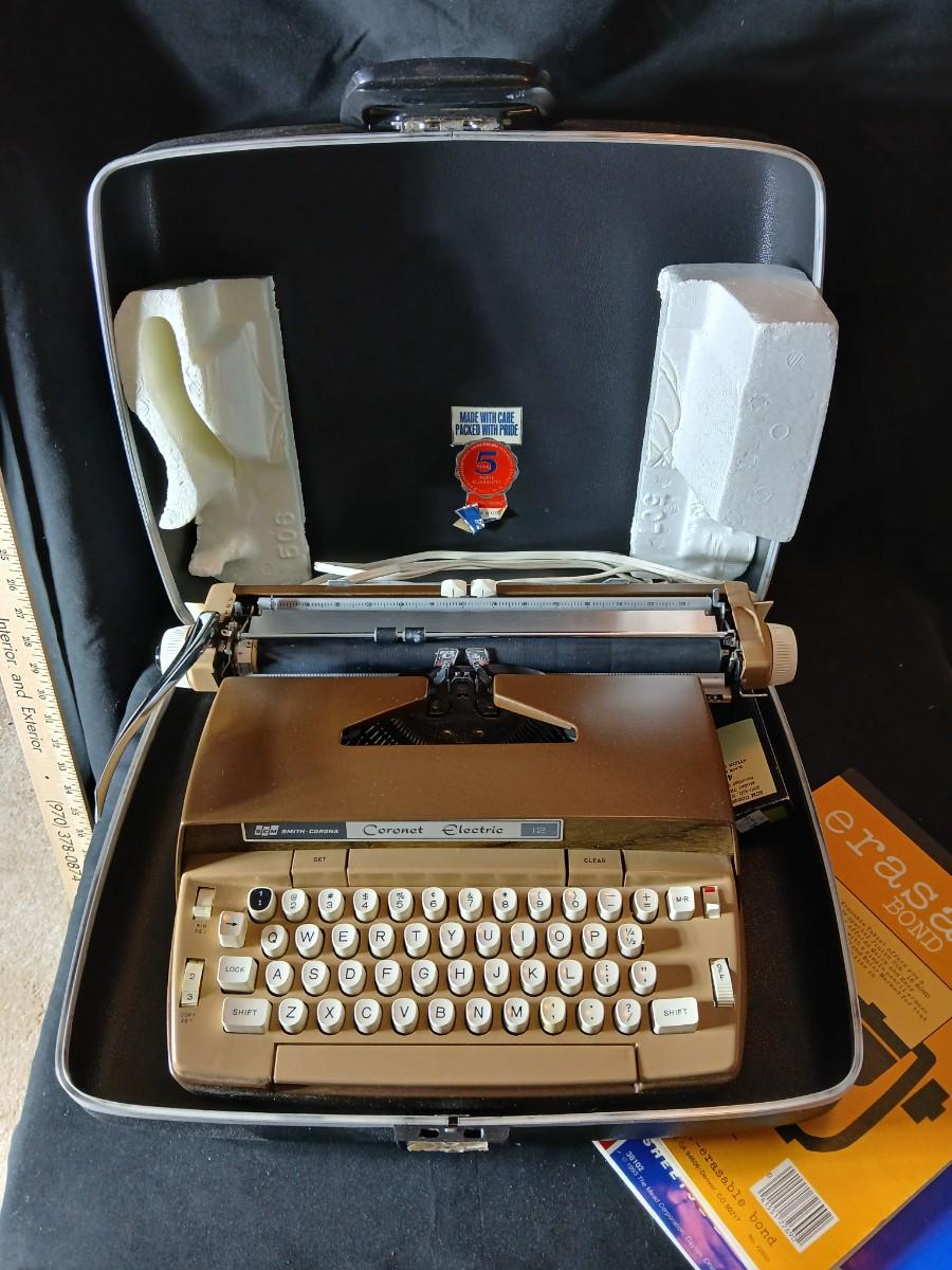 Classic! Smith Corona Coronet electric 12 typewriter with case. APPEARS BRAND NEW!! Still has the Styrofoam packaging inside the case!