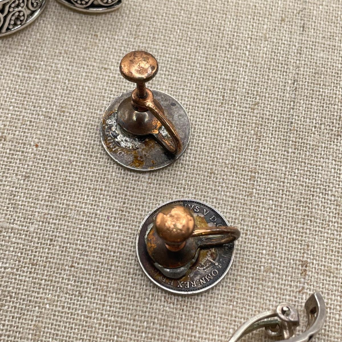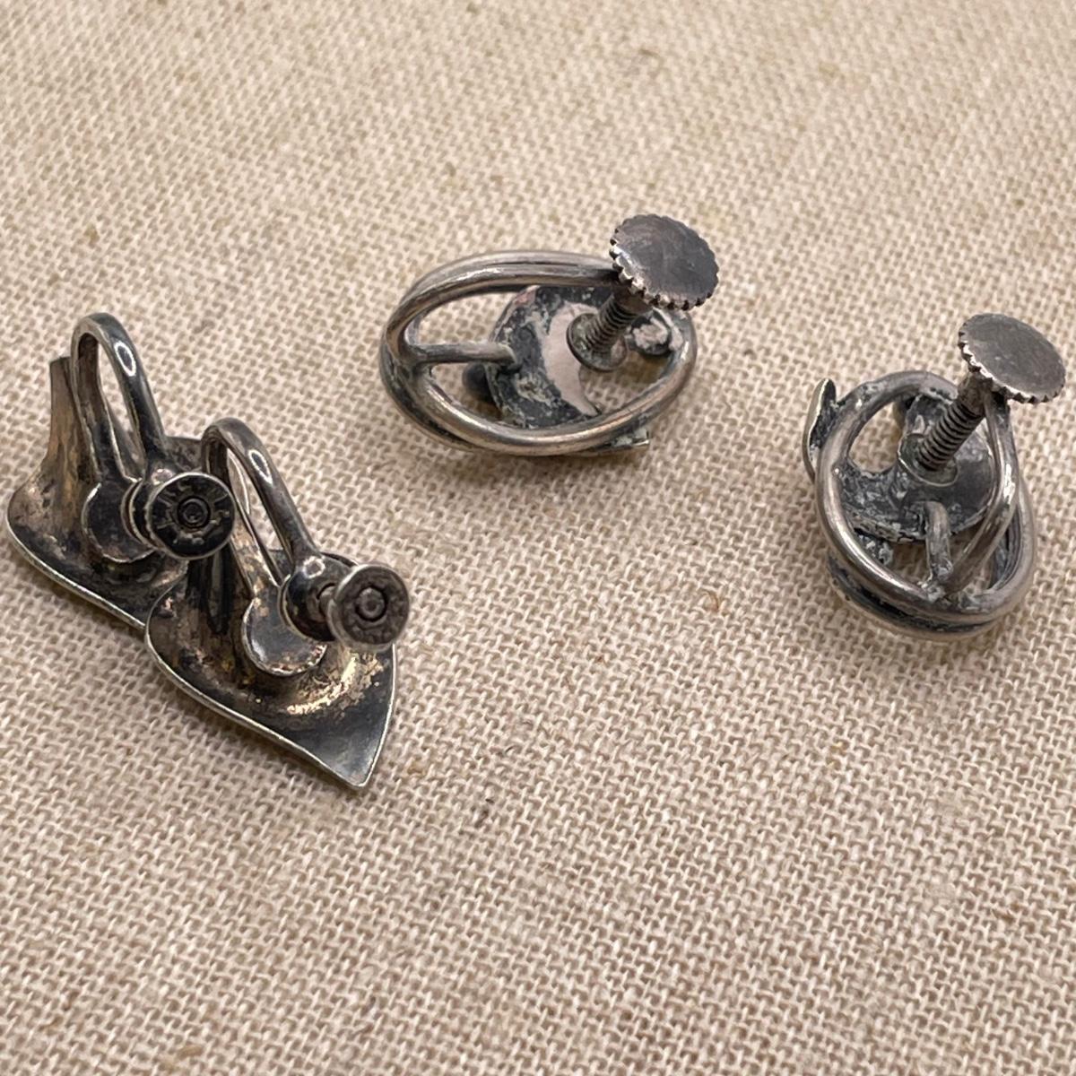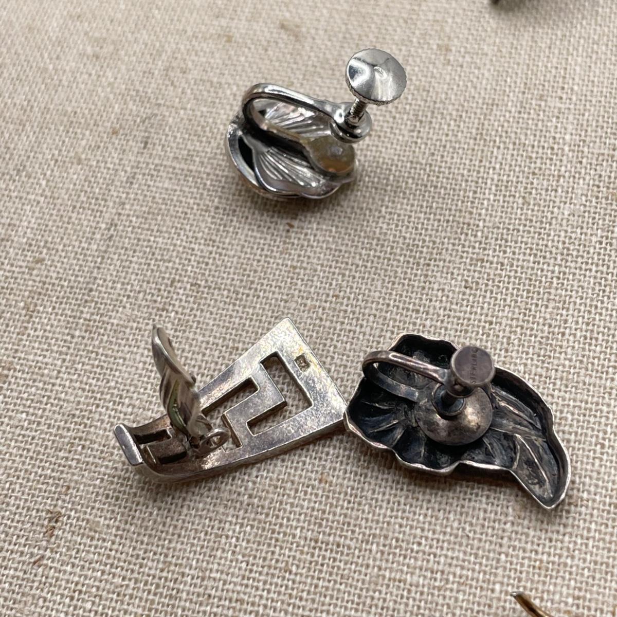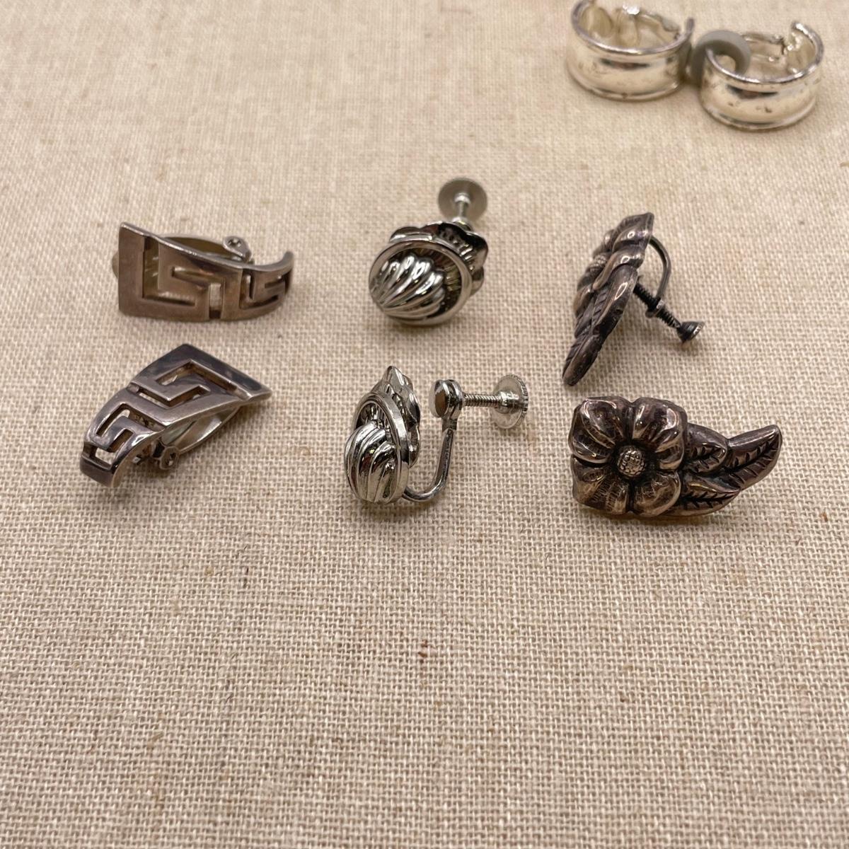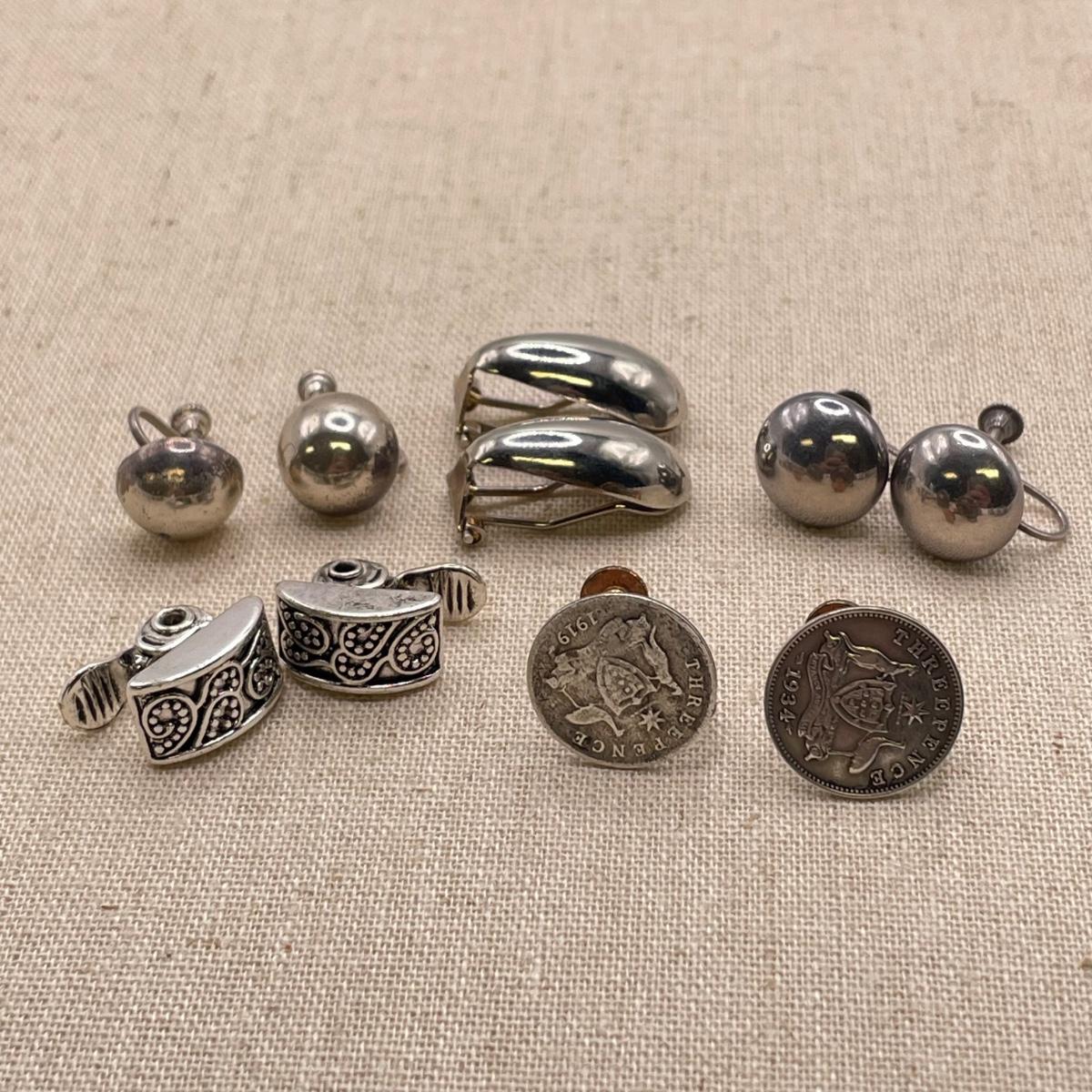Over 15 pairs of silver colored clip earrings with a modern feel. Seven pairs have screw backings that are marked Sterling, there is also a Native American style pair marked 925. Lot also includes a sealed 14pc clip on backing set. See images. Shipping available. All sales are final. No returns or refunds. Please bid accordingly.