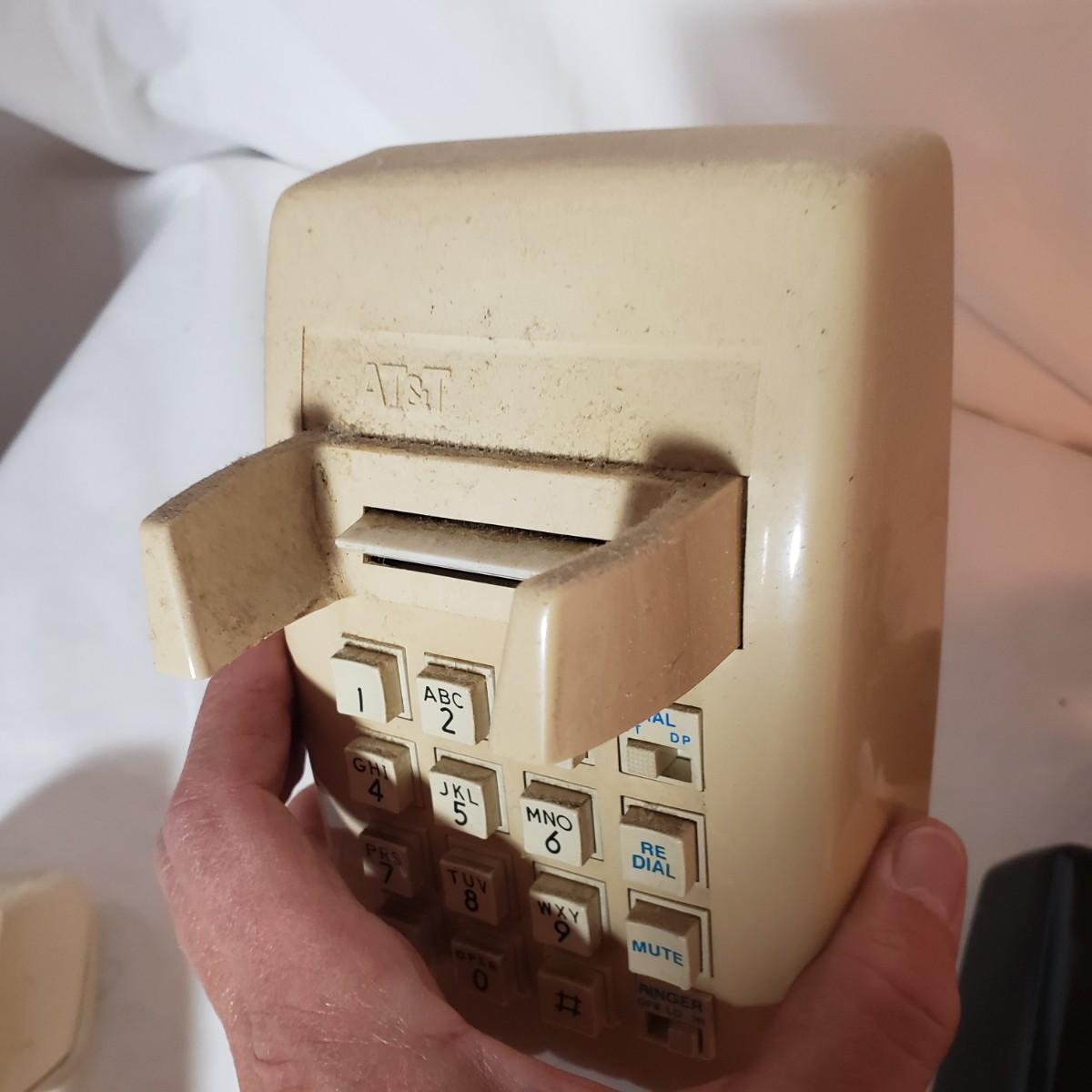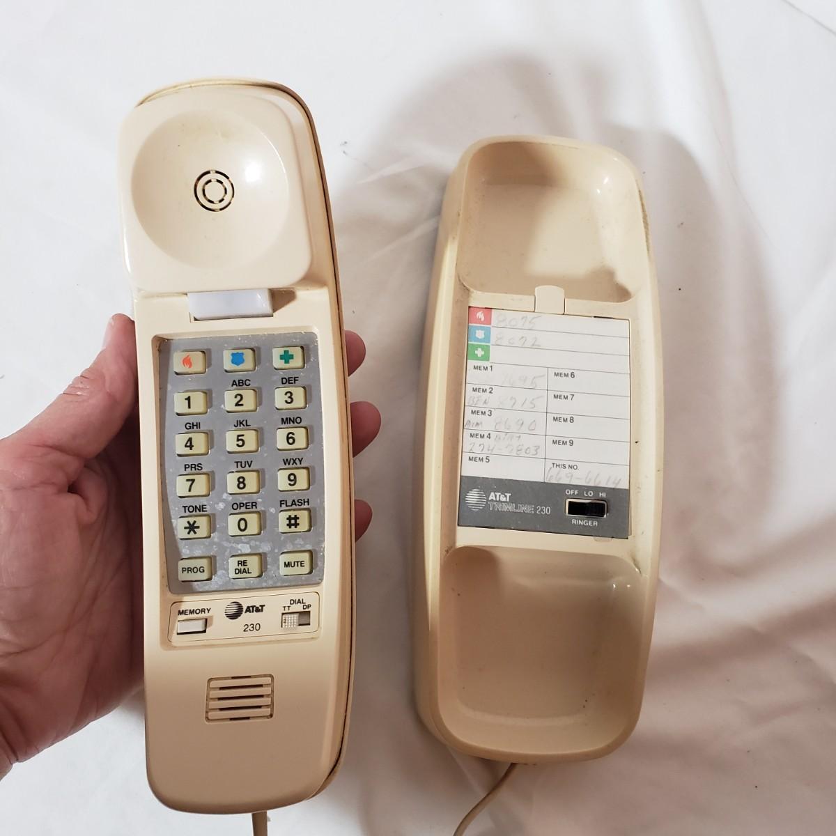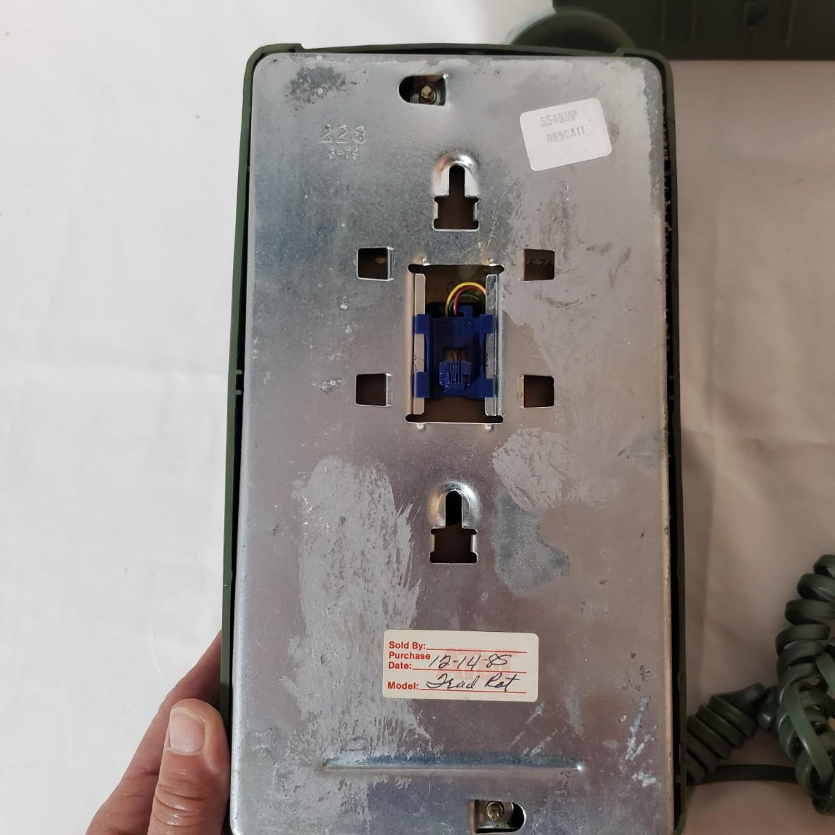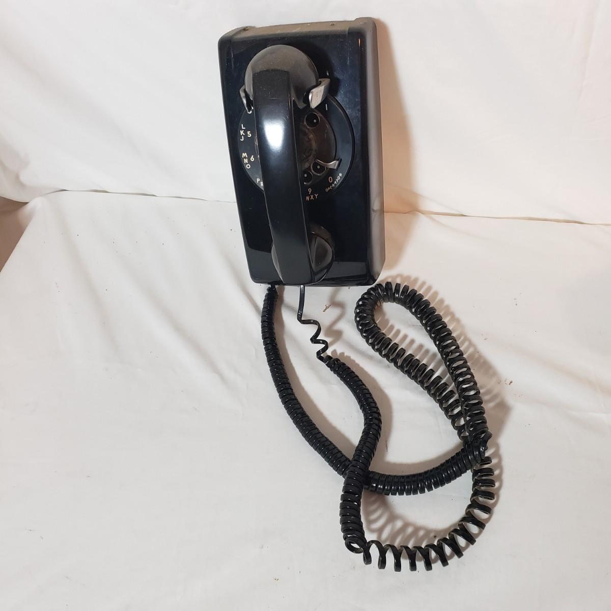 This five piece old school telephone lot is definitely not the wrong number! There are three wall mounted phones and two table top. The two mounted ones are rotary, while the other is touch tone. The rotary phones measure approximately 5" x 3" x 10"H. Note how long those spiral cords are from having to go into the other room for privacy!