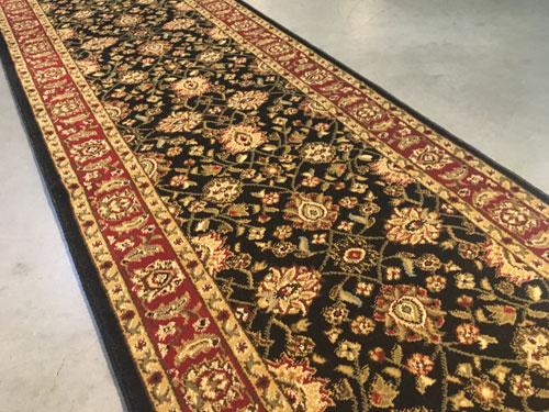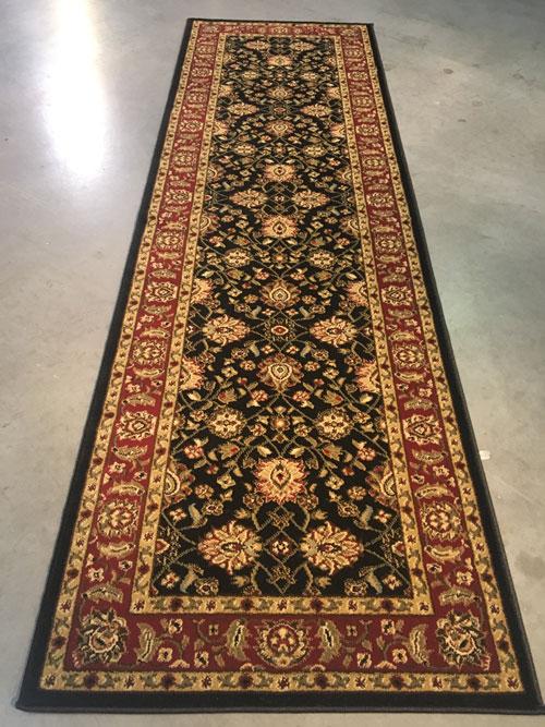 2 Feet 7 Inches X 11 Feet detailed Allover Turkish Design Brand Name Runner, Black, Red and Multi Accent Colors. Made of Durable and easy to care. Polypropylene Pile Power Loomed in Turkey.