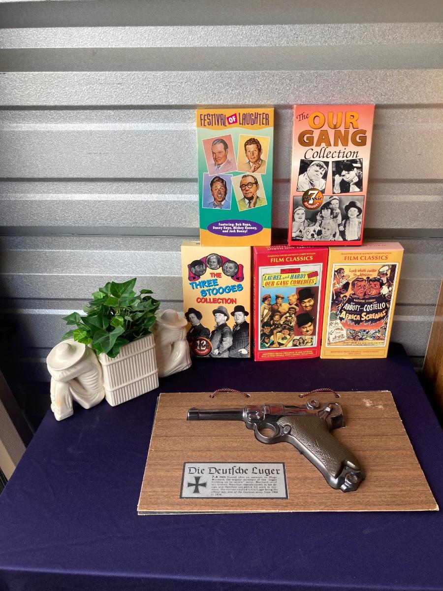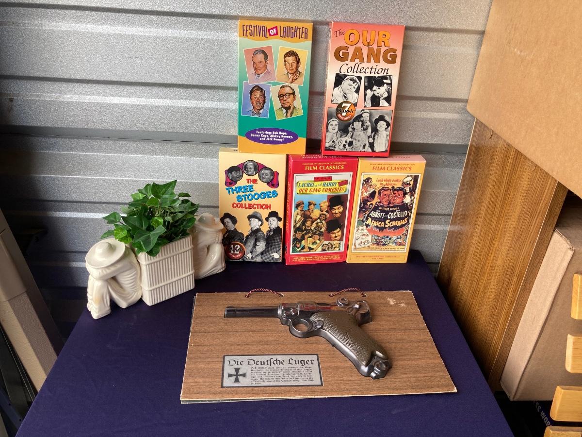 CLASSIC TV SHOW MOVIES, VINTAGE PLANTER, GERMAN GUN WALL HANGING
