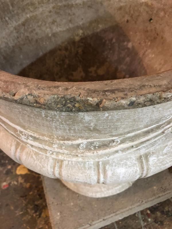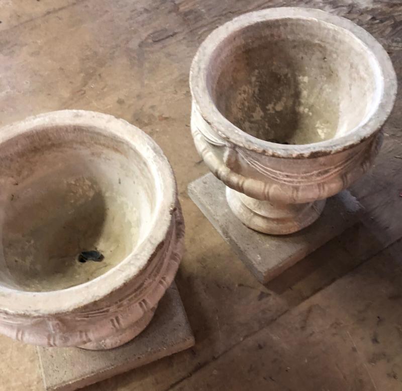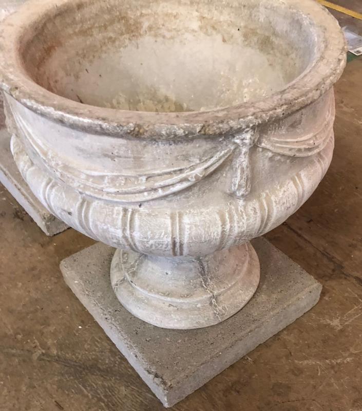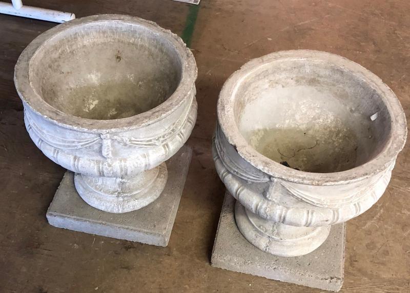 In good used condition here are a matching pair of classical style concrete garden planters...17" x 14"...