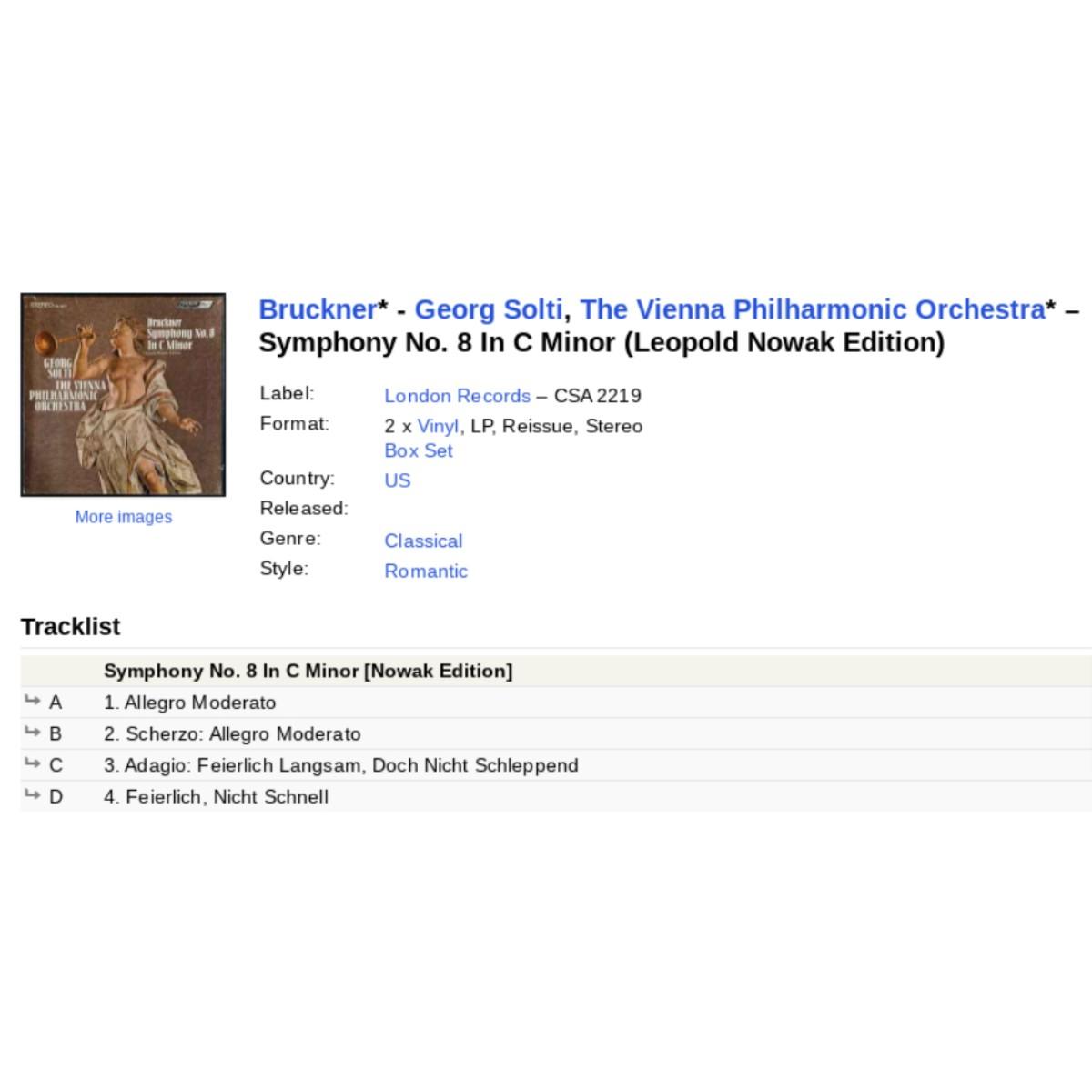 Anton Bruckner - Georg Solti, The Vienna Philharmonic Orchestra - Symphony No. 8 In C Minor (Leopold Nowak Edition) - London Records – CSA 2219 . The shrink wrap does have some tears.
