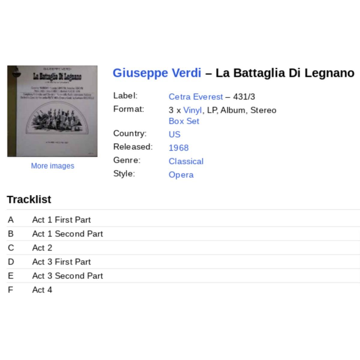 Giuseppe Verdi - La Battaglia Di Legnano - Cetra Everest – 431/3. The shrink wrap does have some tears.