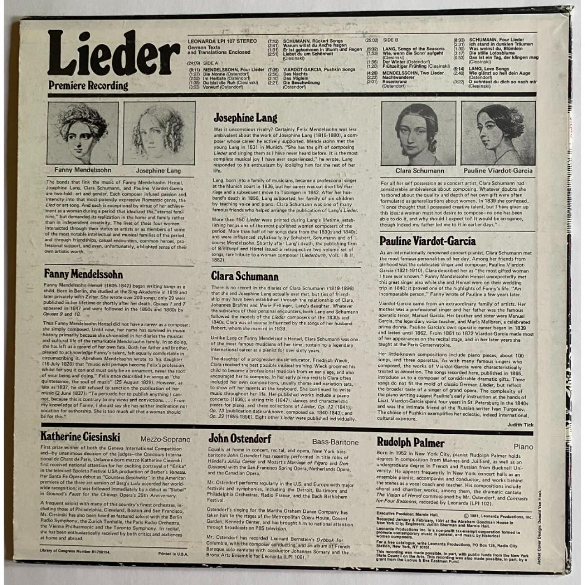 Katherine Ciesinski, John Ostendorf, Rudolph Palmer - Clara Schumann / Fanny Mendelssohn / Josephine Lang / Pauline Viardot-Garcia - Lieder - Leonarda Productions – LPI 107.