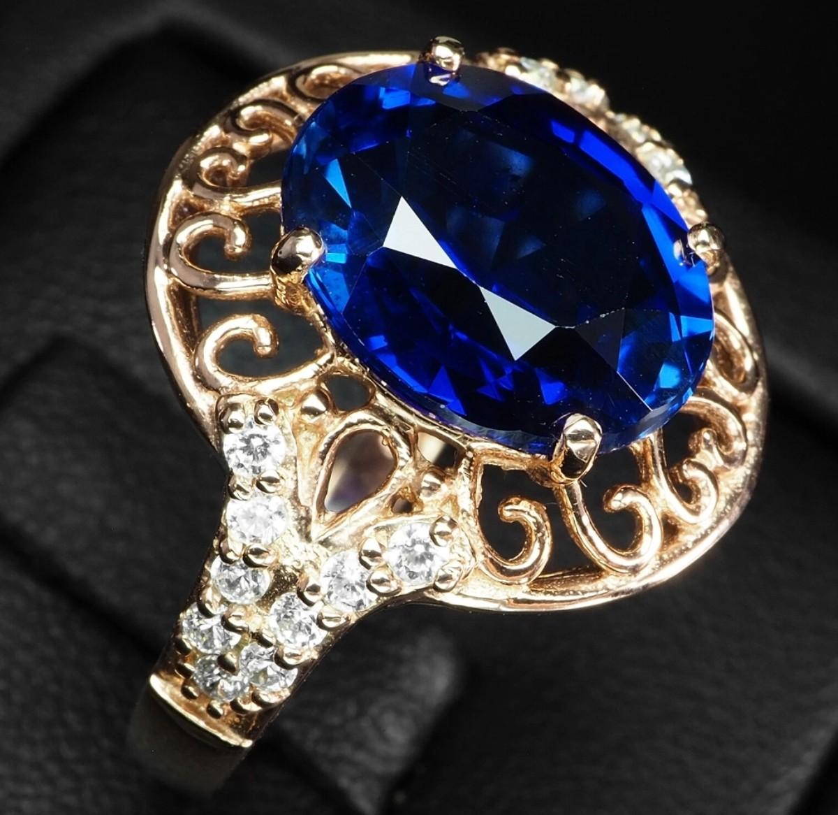 Classically Navy Blue Lab Grown Sapphire 6.65Ct 925 Sterling Silver Rose Gold Plated Ring