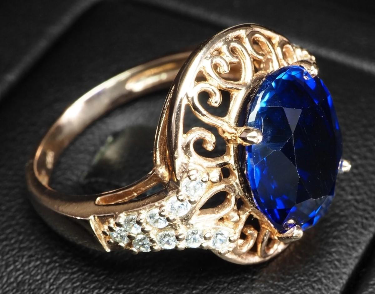 Classically Navy Blue Lab Grown Sapphire 6.65Ct 925 Sterling Silver Rose Gold Plated Ring