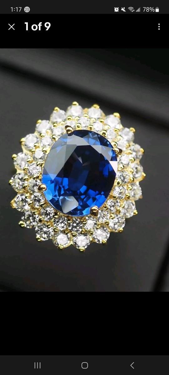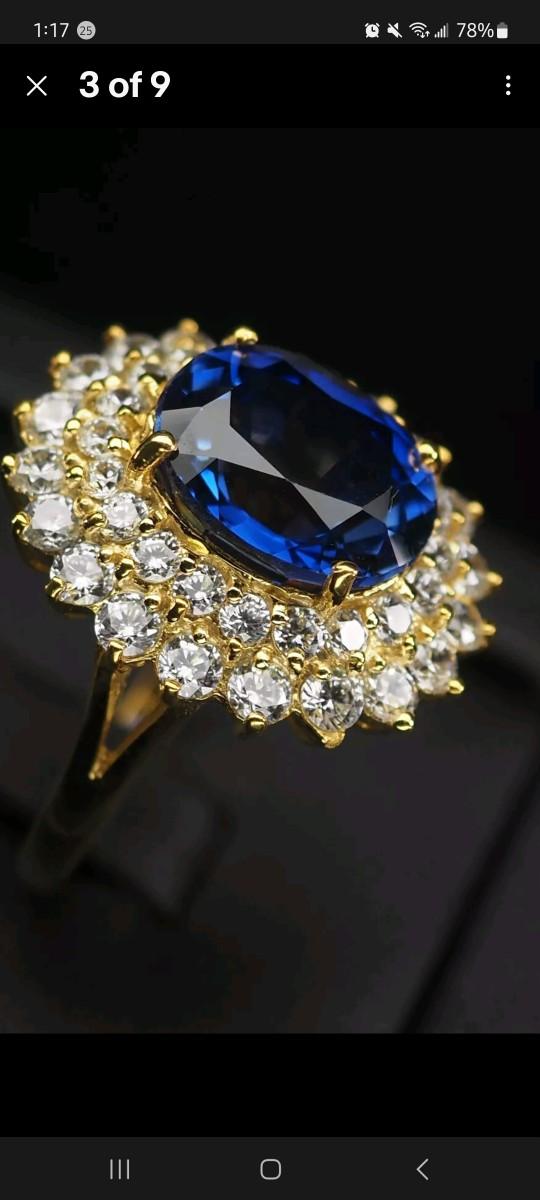 Classically Vivid Blue Sapphire 7.3Ct 925 Sterling Silver 24K Gold Vermeil Ring